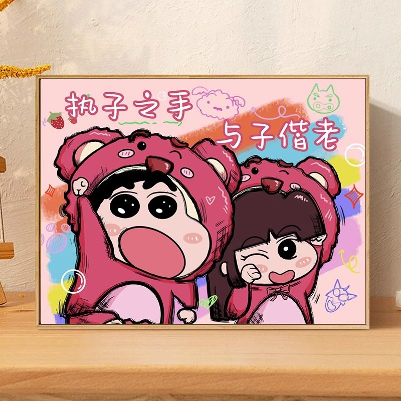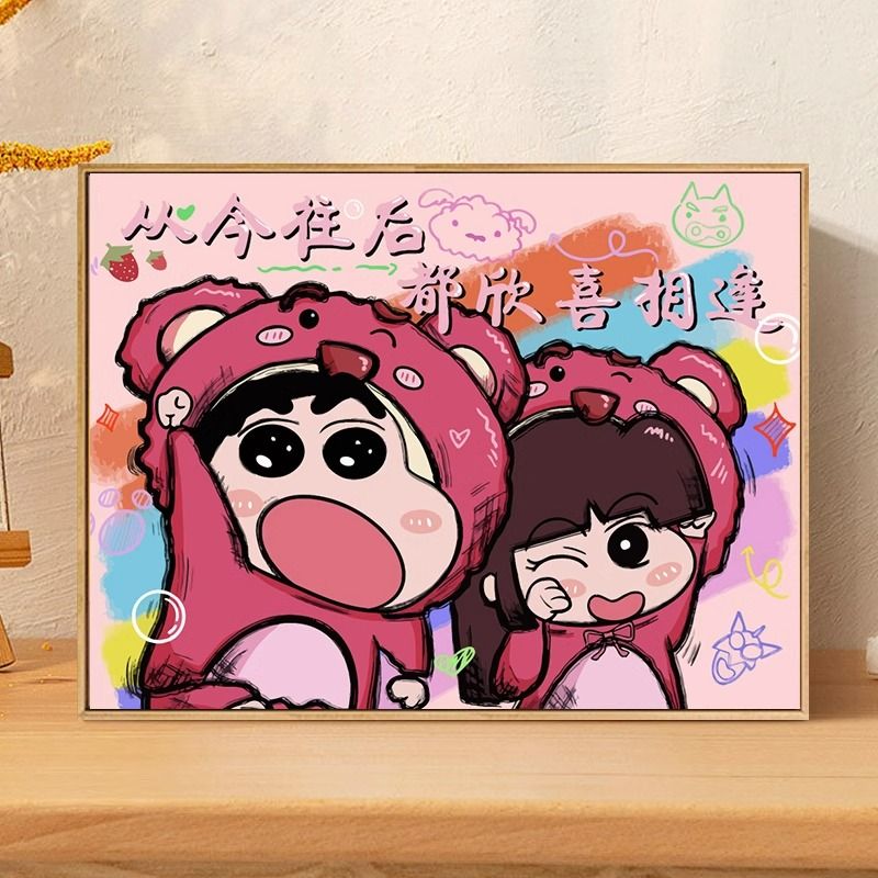 【3日出荷】クレヨンしんちゃんカップルデジタル油絵diy充填色手作り絵結婚置物漫画アクリル装飾画