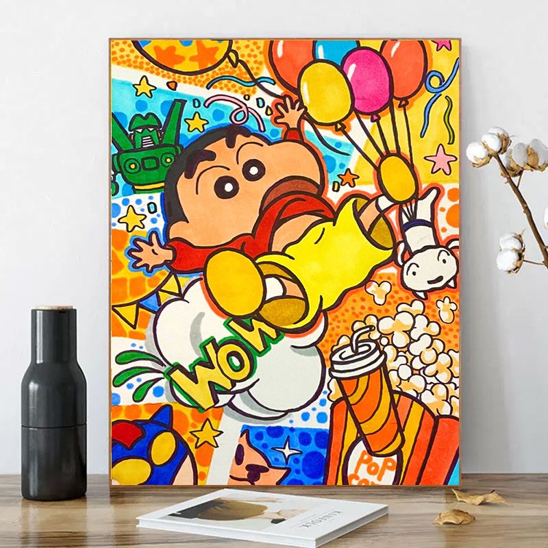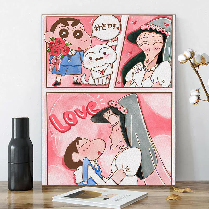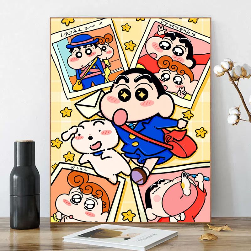 【3日出荷】クレヨンしんちゃん家族デジタル油絵diyアクリル絵の具漫画充填画リビングルーム子供部屋装飾画