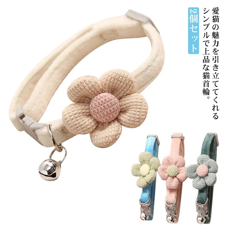 [今月の新型]2個セット ペット 首輪 猫 首輪 小型犬 首輪 お花 鈴付き 柔らかい シンプル 子猫 おしゃれ 可愛い ペットグッズ セーフティ 安全 猫首輪 軽い かわいい 着用に便利 ねこ くび