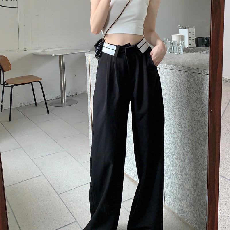 ストレートレッグパンツハイウエスト黒スリムスーツパンツカジュアルパンツレディースサマードレープルーズワイドレッグパンツフロアレングスパンツ
