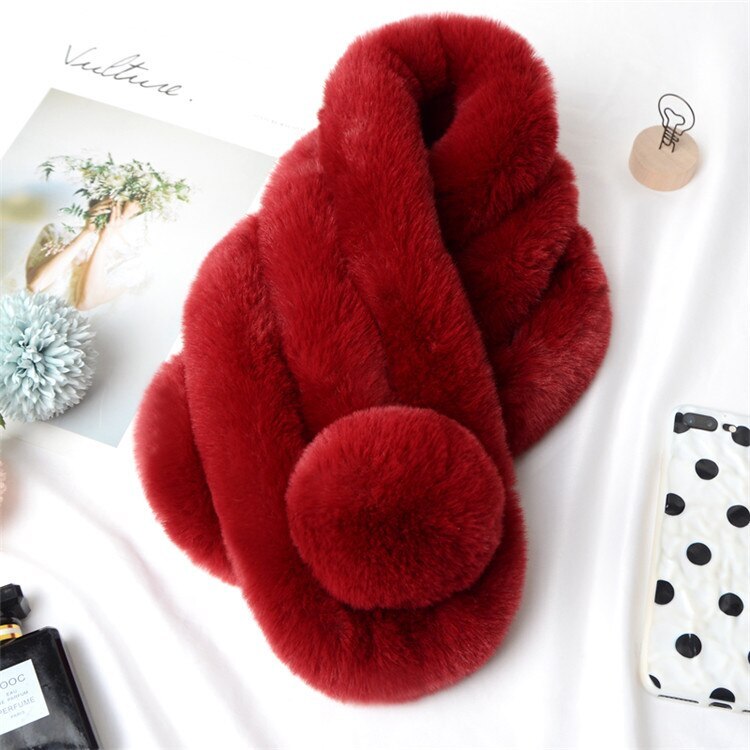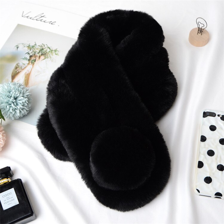 韓国ファッション ぬいぐるみ スカーフ 可愛い 厚手 暖かい イミテーションウサギの毛 ファー