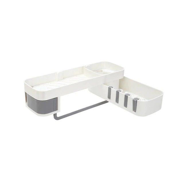 浴室ラック 収納ラック 収納棚 フック付き 浴室 軽量 粘着式 洗面所ラック 突っ張り棒 小物整理 石鹸置き お風呂 壁掛け式 便利