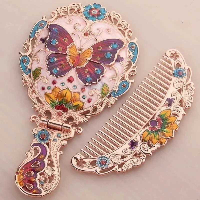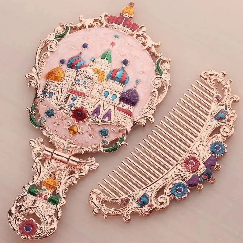ハンドルセット付き小型ミラーレトロポータブルポータブル化粧鏡折りたたみ式デスクトッププリンセスミラー