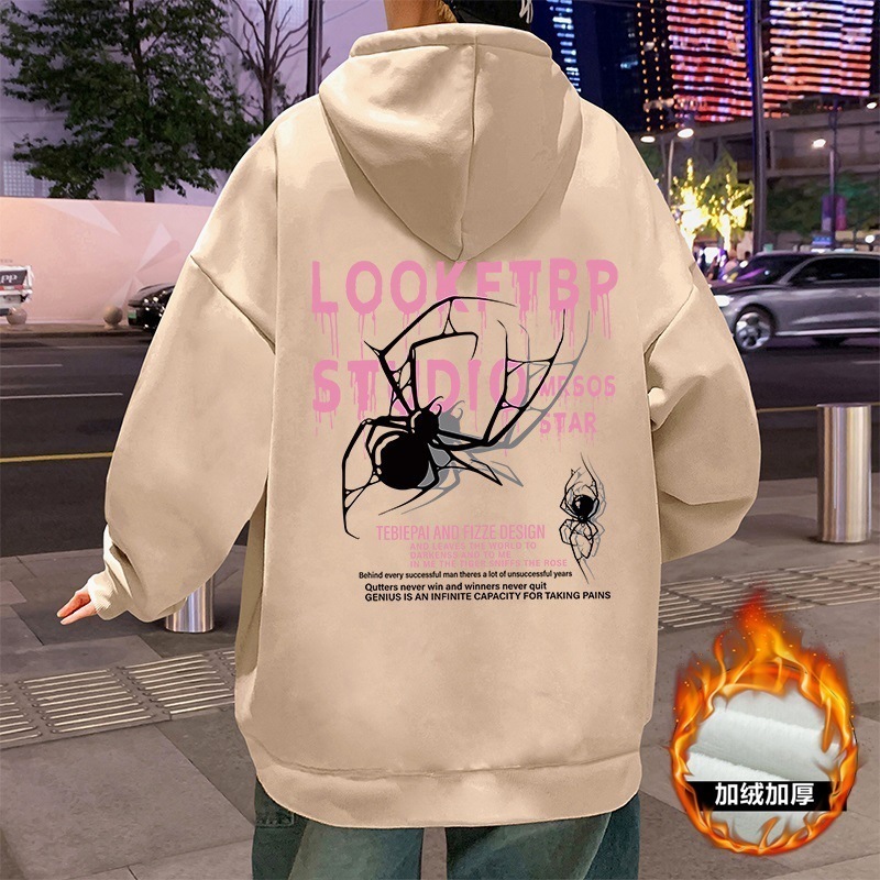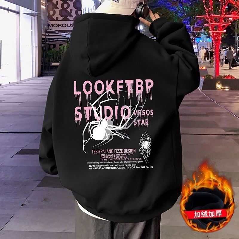 メンズファッション パーカー ロングスリーブトップス とろみとベルベットのコットンフードセーター男性秋冬新作ルーズカップル