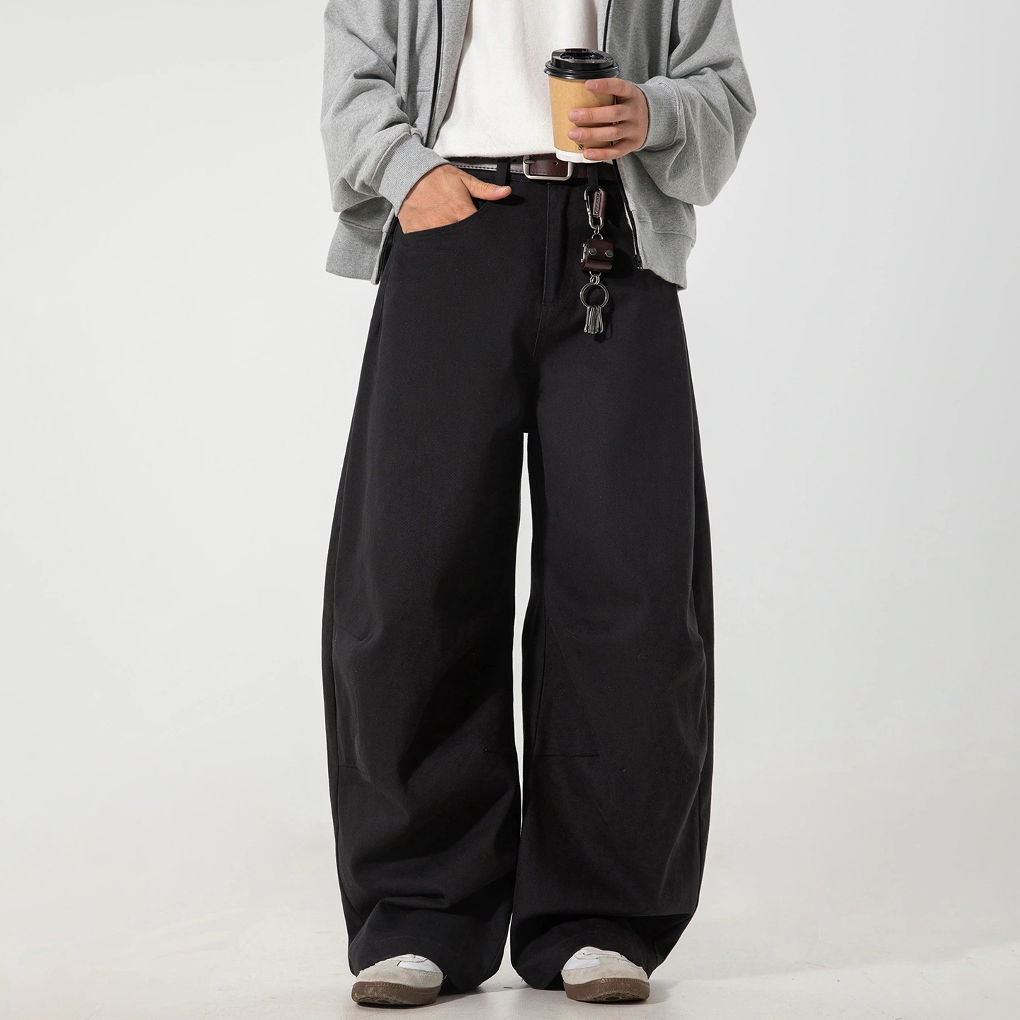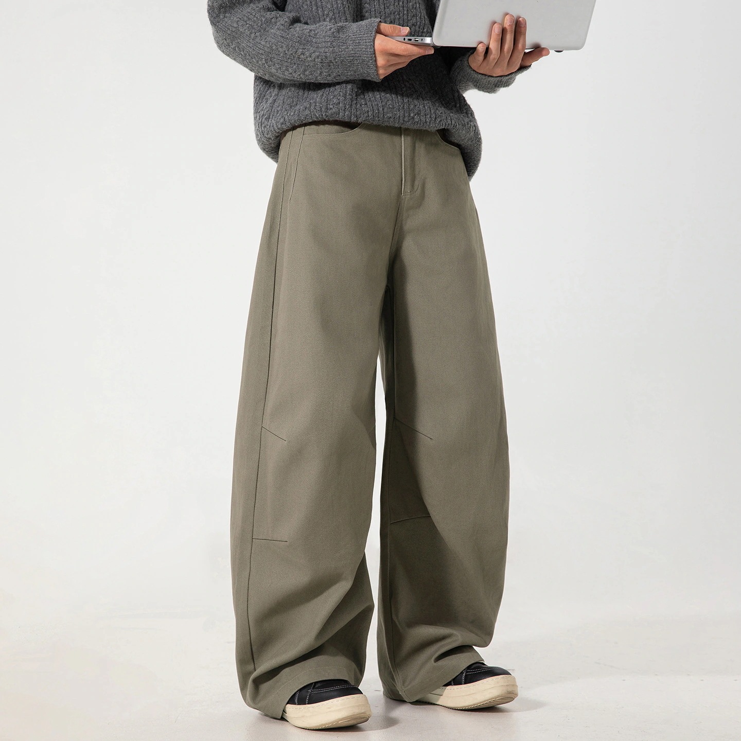 レトロプリーツ構造カーブドブレードワークパンツメンズ秋新作シルエットカジュアルパンツゆったりストレートロングパンツ