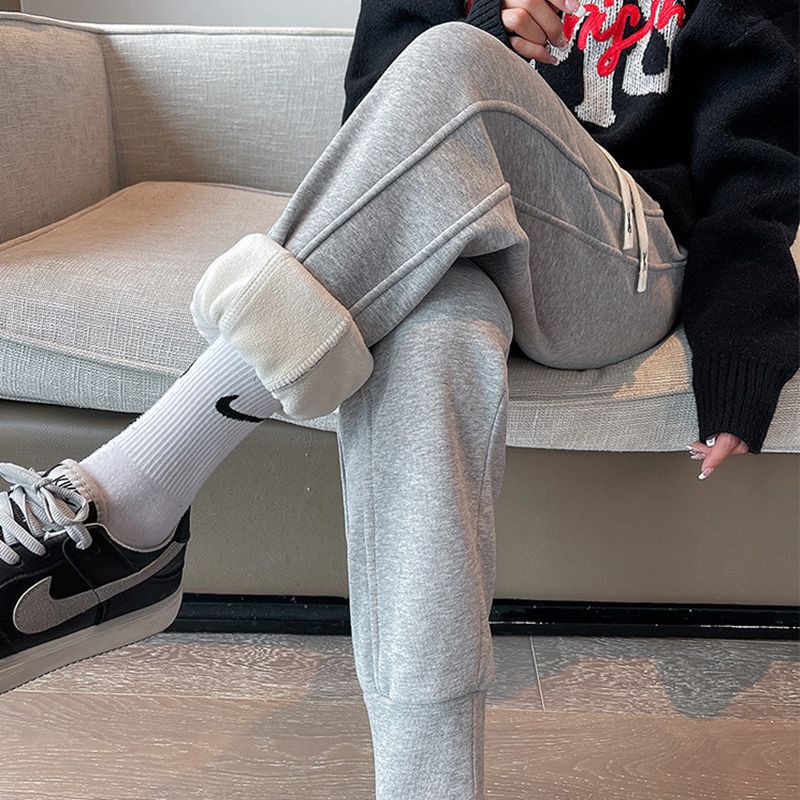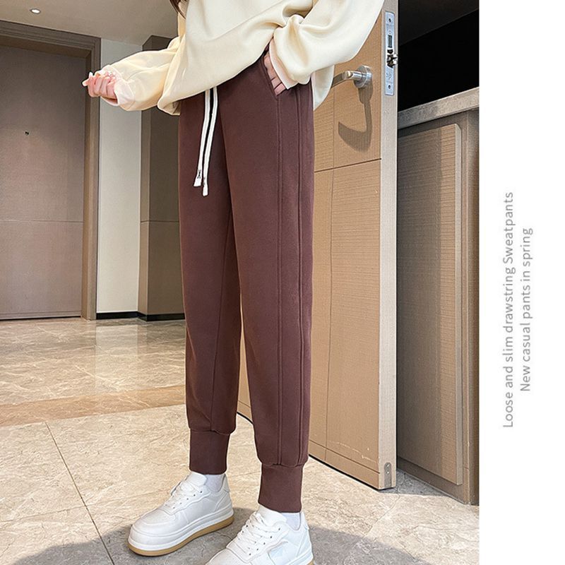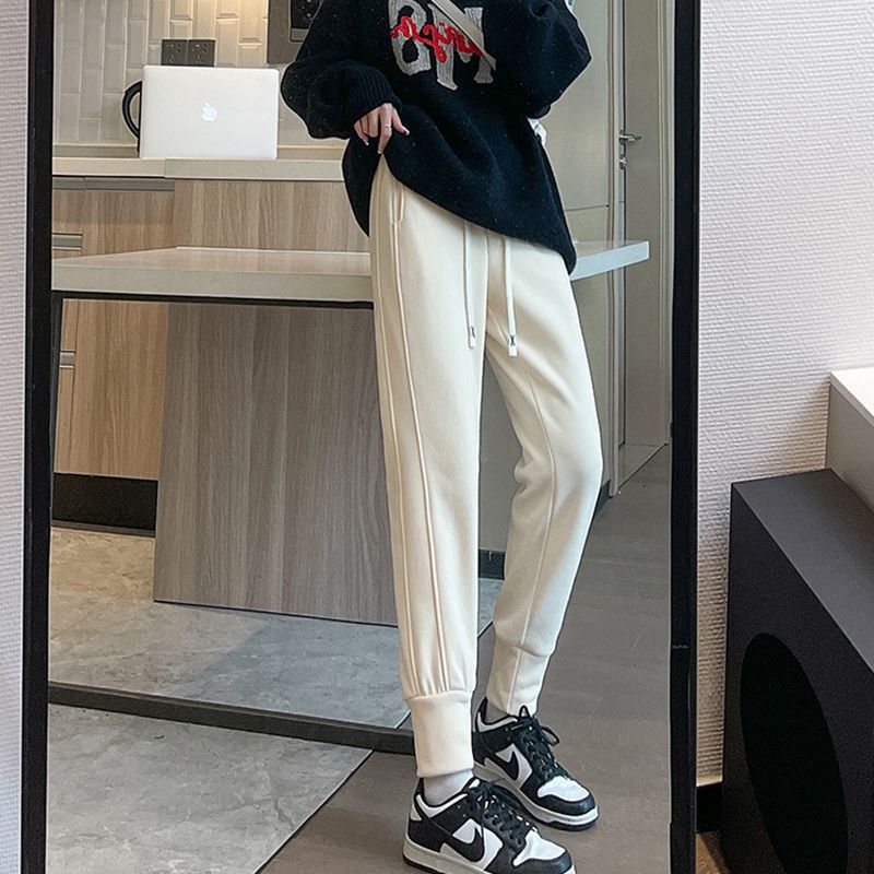 ジャージ ドローストリング 九分丈 ゆったり 裏起毛 ニットパンツ 防寒 スッキニー 厚手