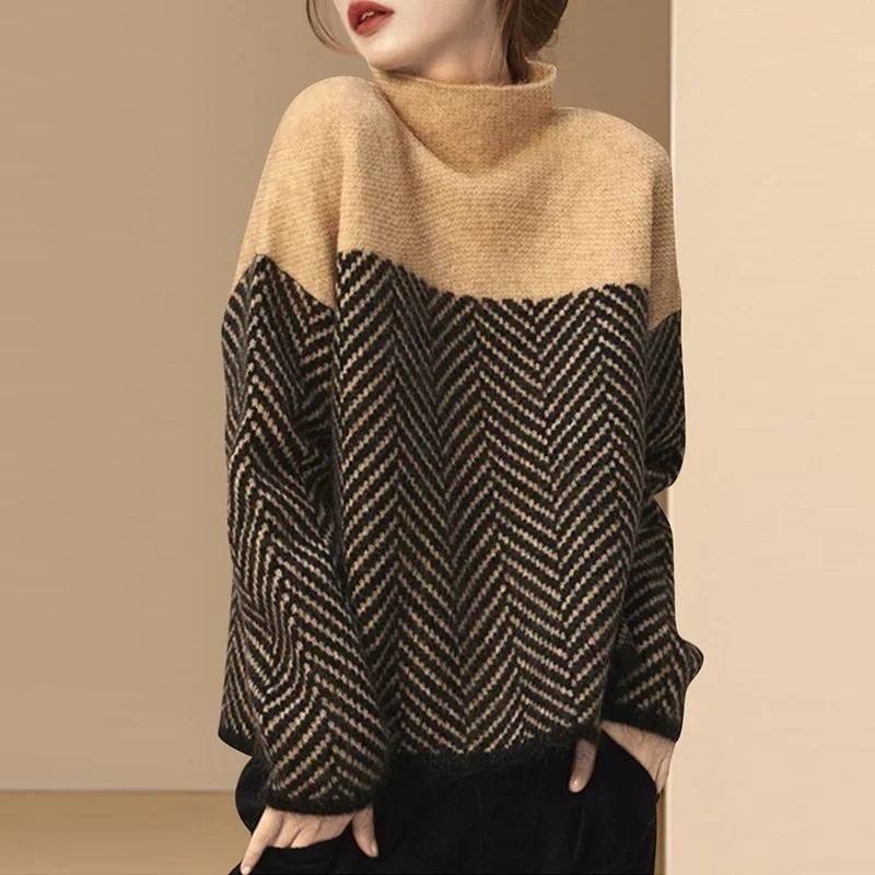 重ね着対応 インナー 保温 ニットセーター カーディガン アウター 長袖 トップス おしゃれ パッチワーク カシミヤタッチ 大きいサイズ レディース