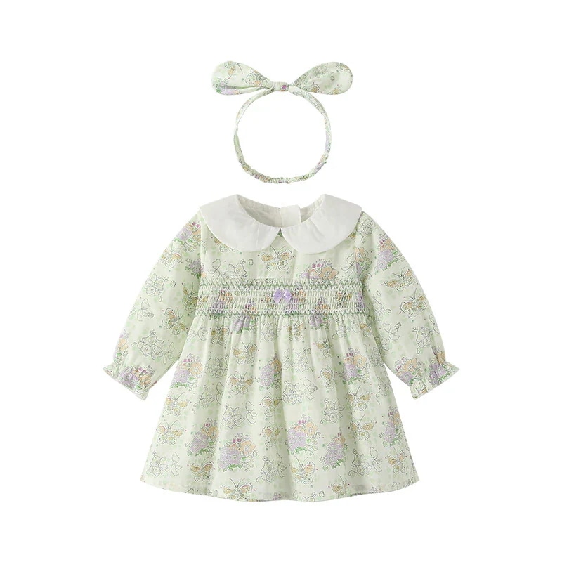 子供ワンピース2025春新作ガールズドレスラペル長袖女の子スカート