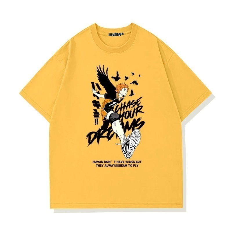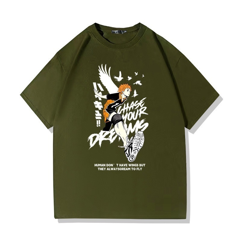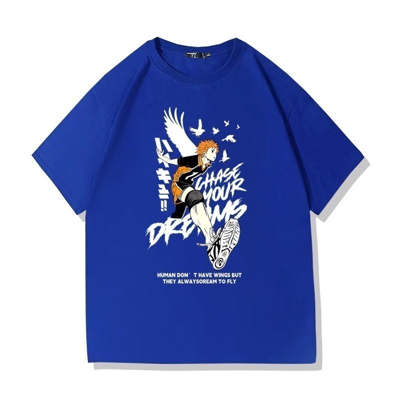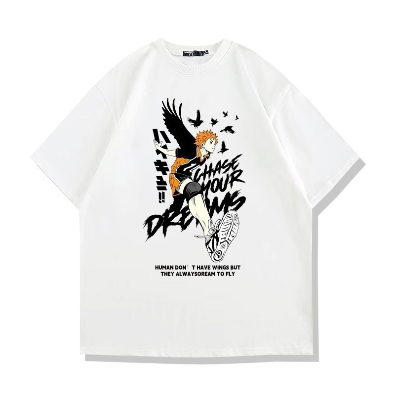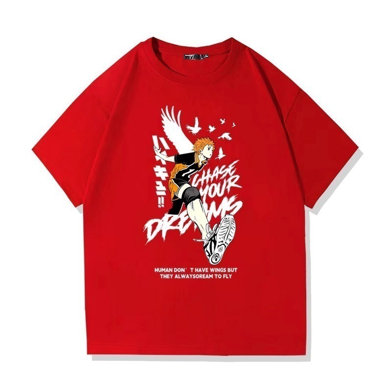 アニメバレーボール少年周辺純綿半袖 Tシャツ男性と女性のための夏のトレンディなブランドルーズオフショルダー半袖トップ