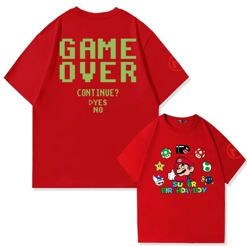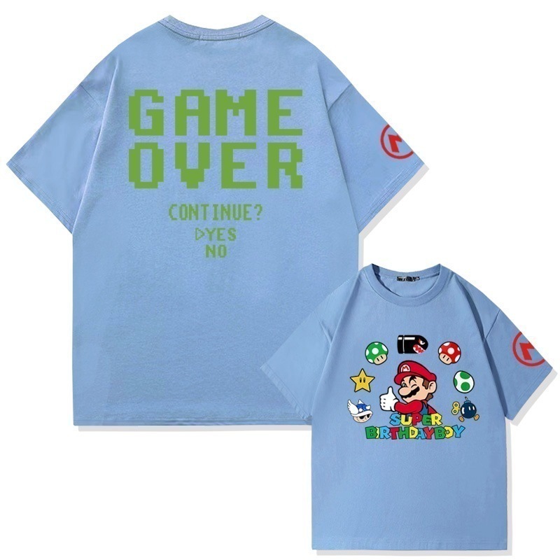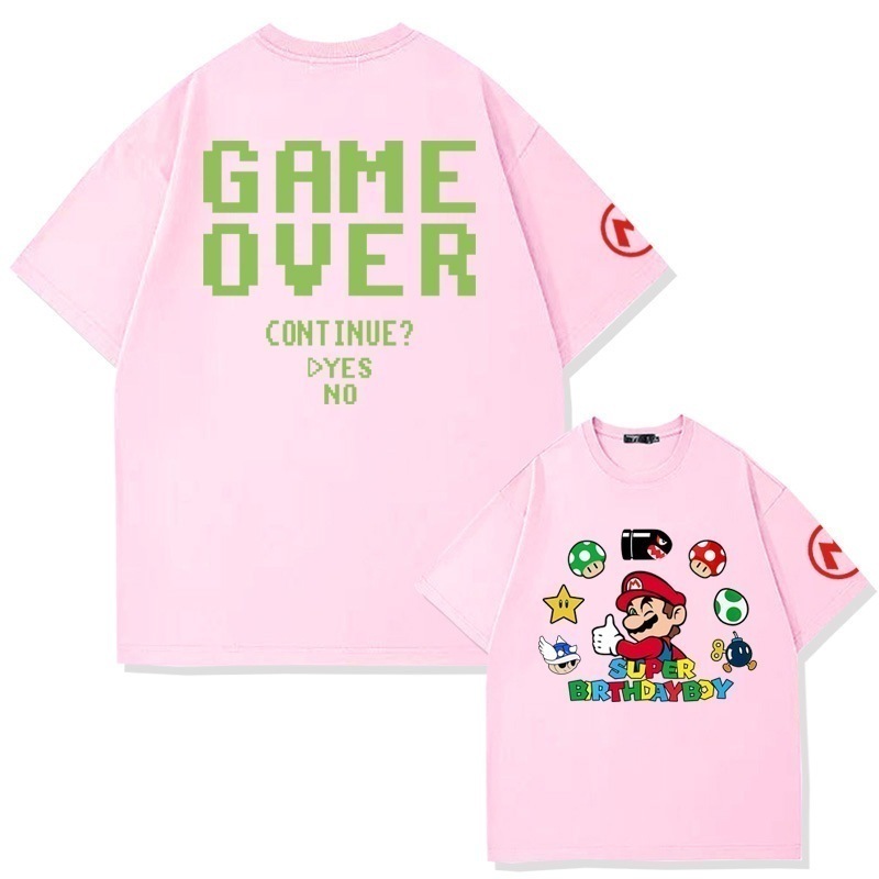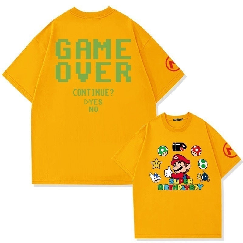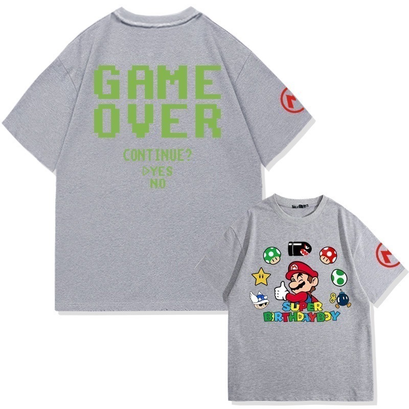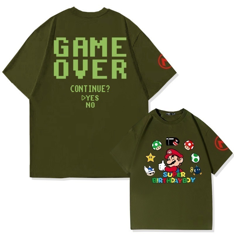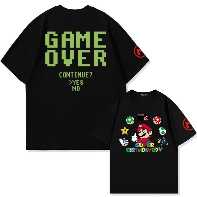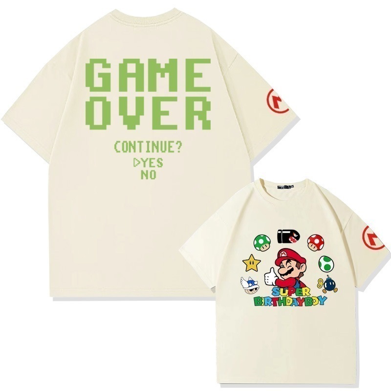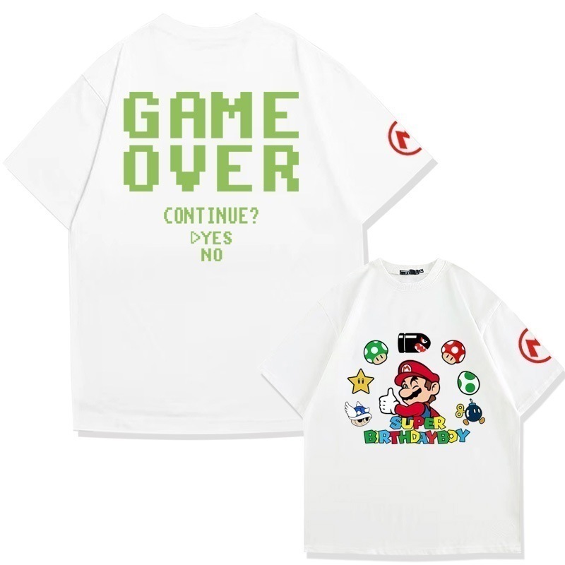 スーパーマリオクリエイティブプリントコットン半袖Tシャツメンズ夏の学生ファッションブランドルーズオフショルダー半袖トップ