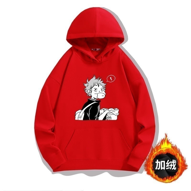 バレーボール少年アニメフード付きプルオーバースウェットシャツメンズ秋若者トレンディなブランドルーズオフショルダー長袖服ジャケット