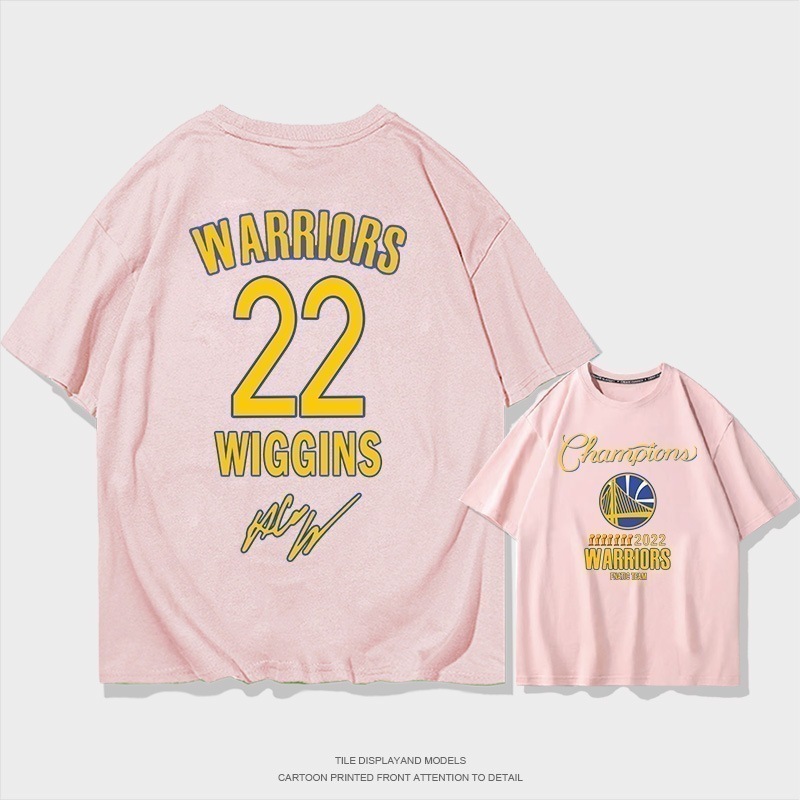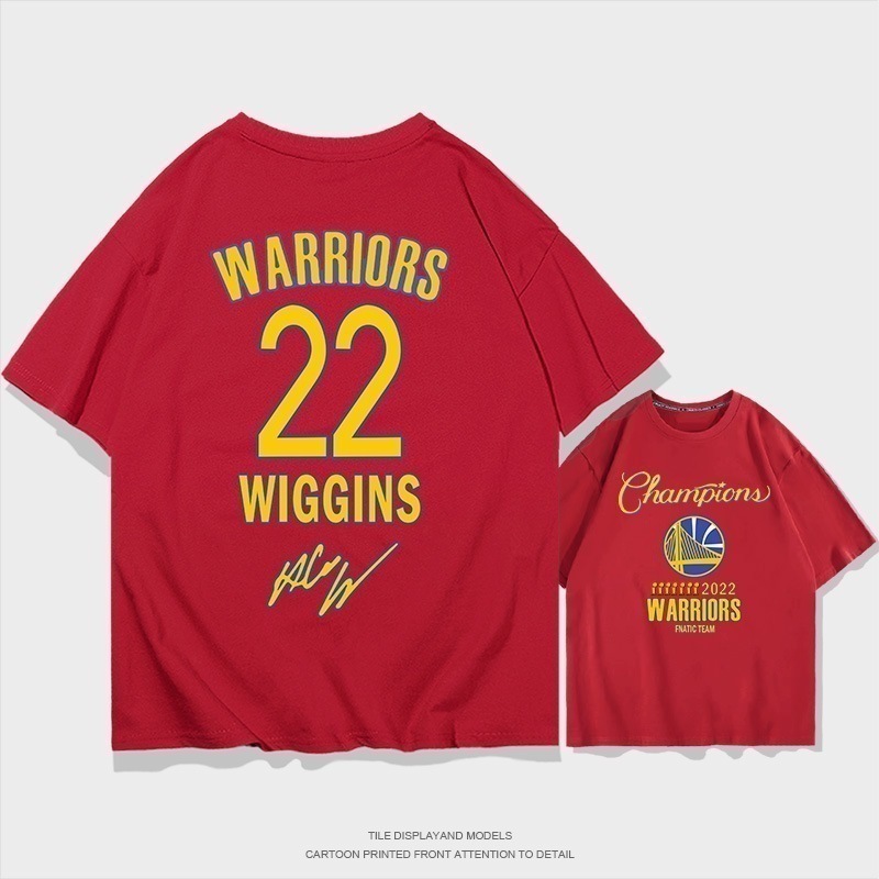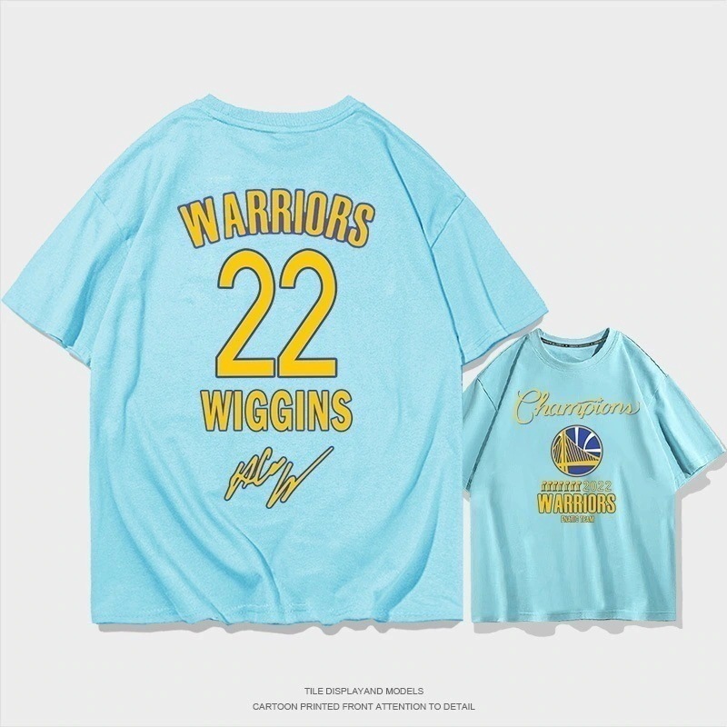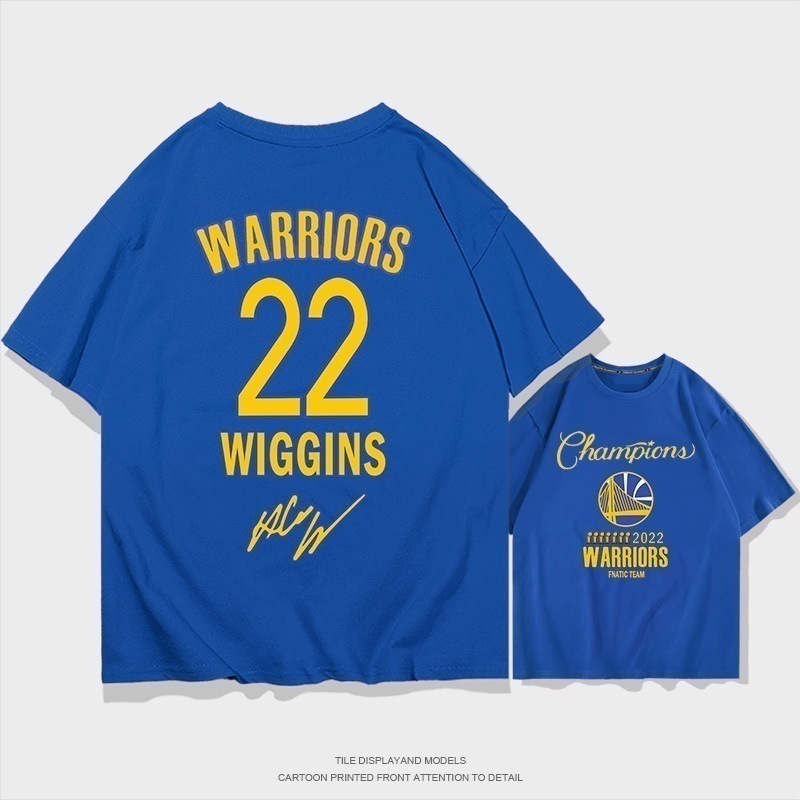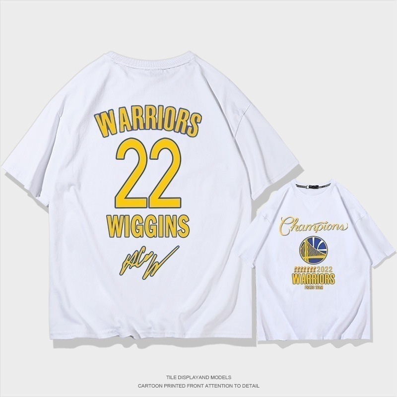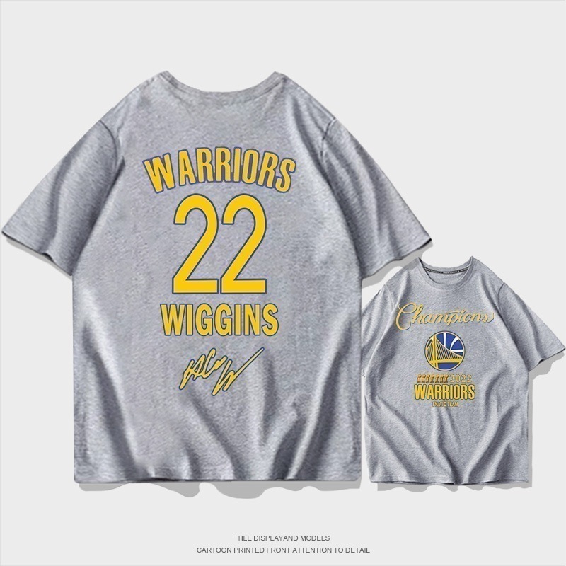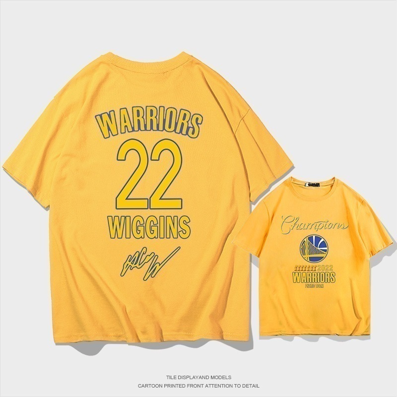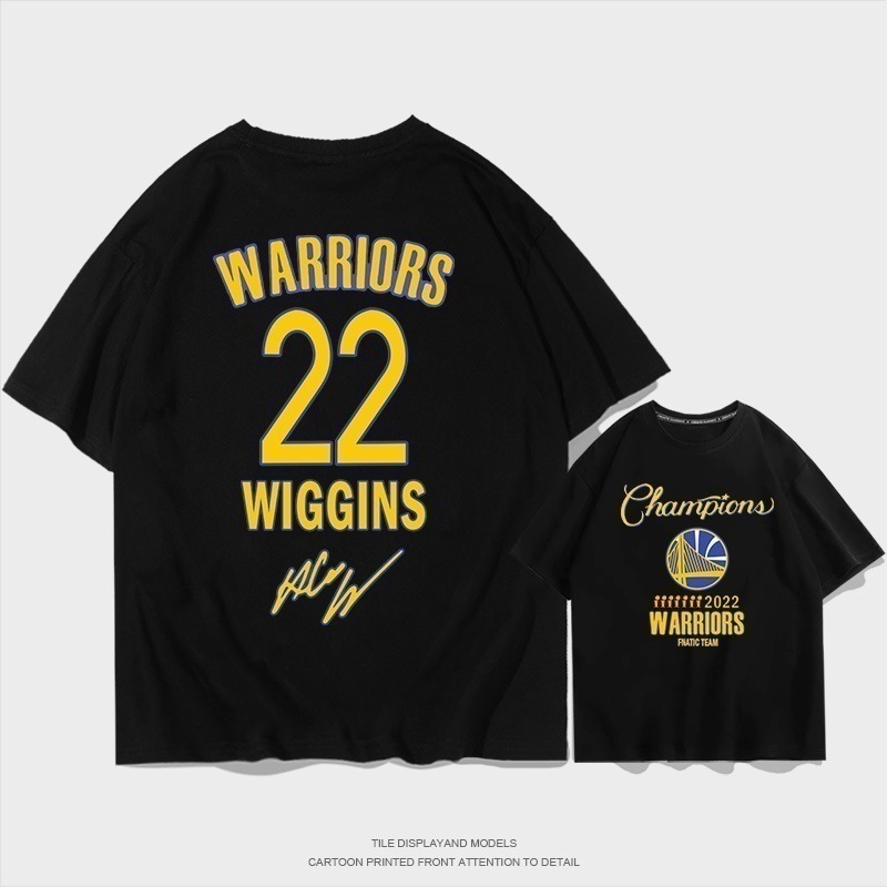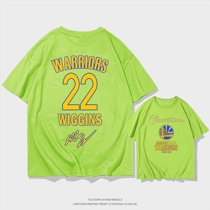 ウォリアーズ ウィギンス No. 22 チャンピオンシップ半袖 T シャツ男性と女性用トレンディなルーズ コットン バスケットボール ハーフスリーブ トレーニング ウェア トップ