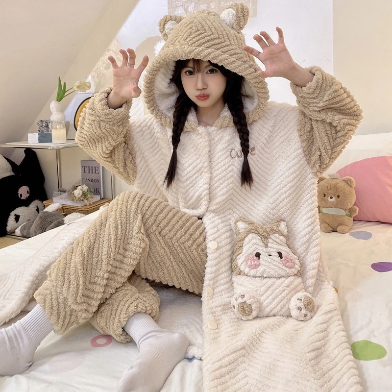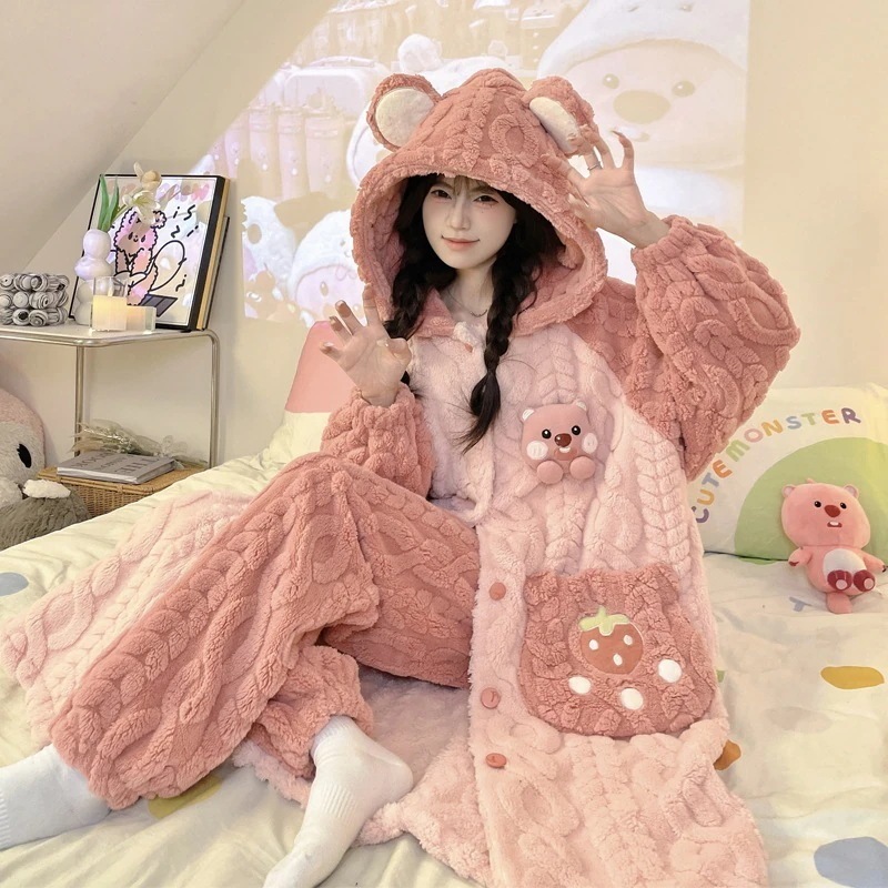 【急速出荷】パジャマ 新作 20スタイル 珊瑚ベルベット 2点セットローブ+パンツ 寝巻き レディース 冬 厚手 新作 かわいい フランネル ホームウェア