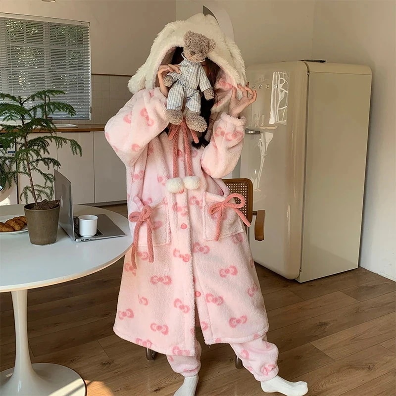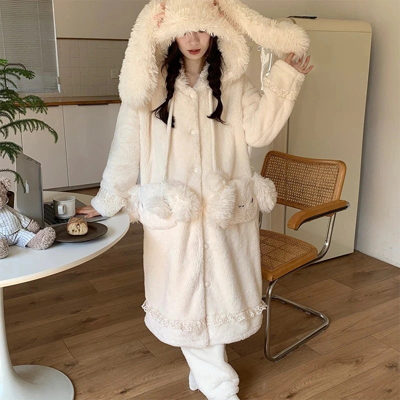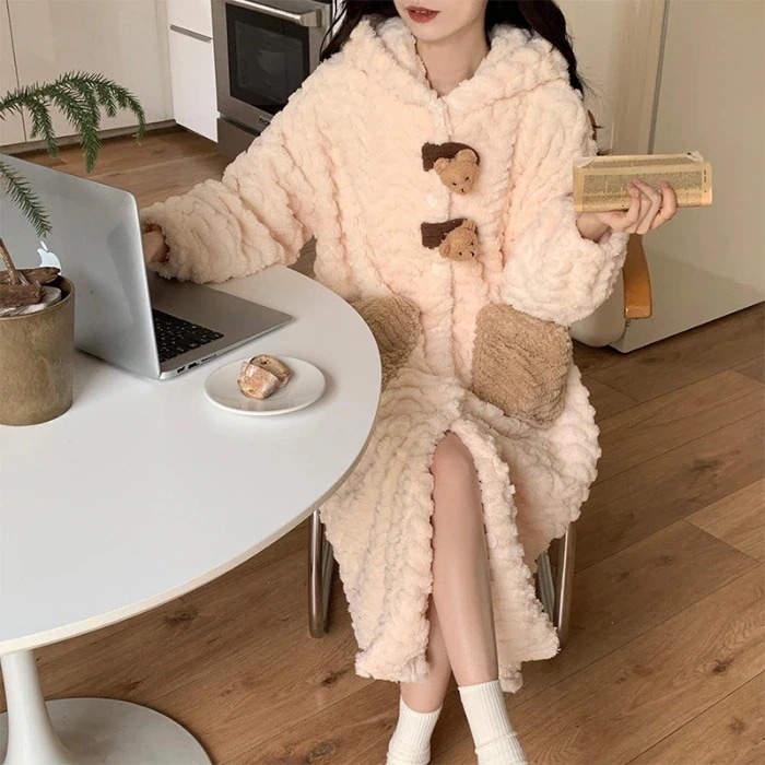 【急速出荷】ルームウェア秋冬新作 かわいいクマ コーラルベルベット ローブ レディース 冬 フード付き 厚手 曖昧さを保つ ロングぬいぐるみ 甘い ロング バスローブ 部屋着