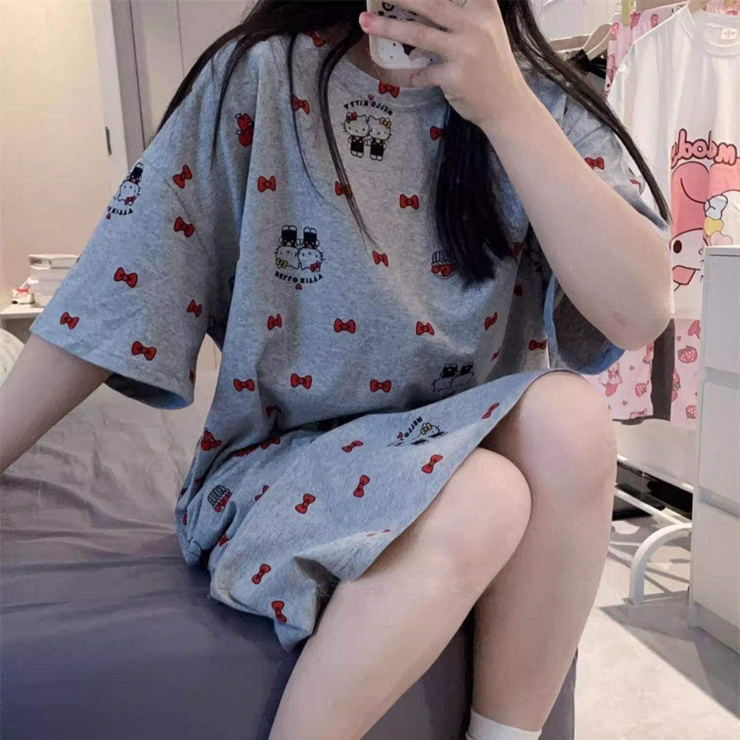 【急速出荷】 大人気 キティ パジャマ レディース 可愛/ワンピース韓国 新作 ハローキティ ファッションレディースパジャマ サラサラ 生地が柔らかくて快適 部屋着半袖ロングスカート