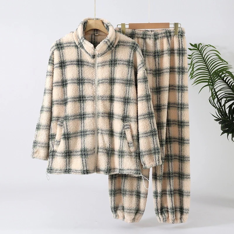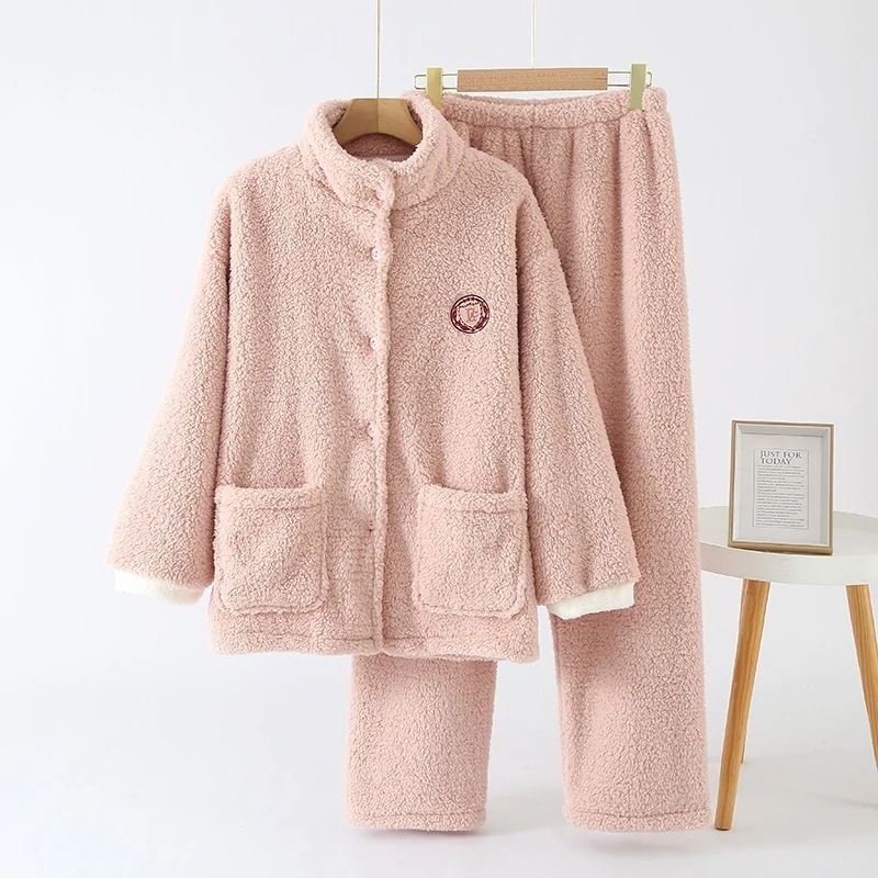 【急速出荷】ルームウェア秋冬新作 レディース 冬用 厚手 保温 フリースパジャマ ジッパーカーディガン型 外出可能 両面フリース ホームウェア 2 点セット