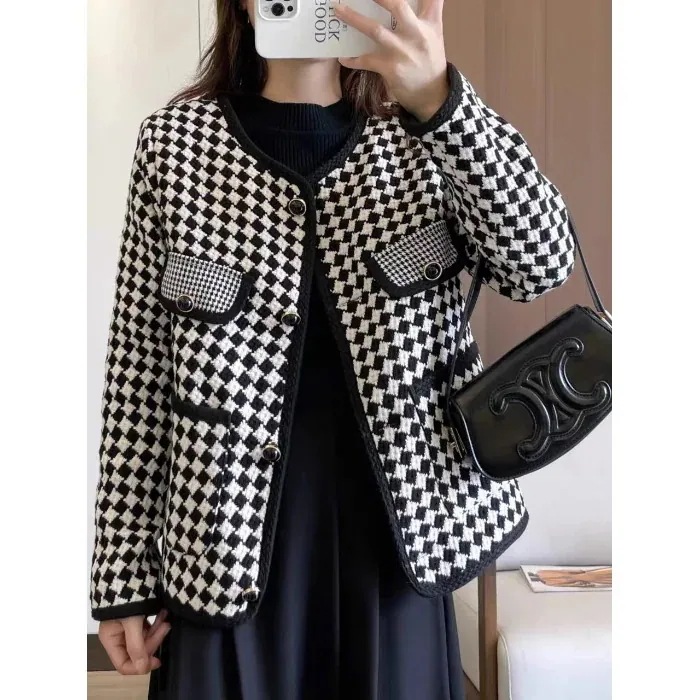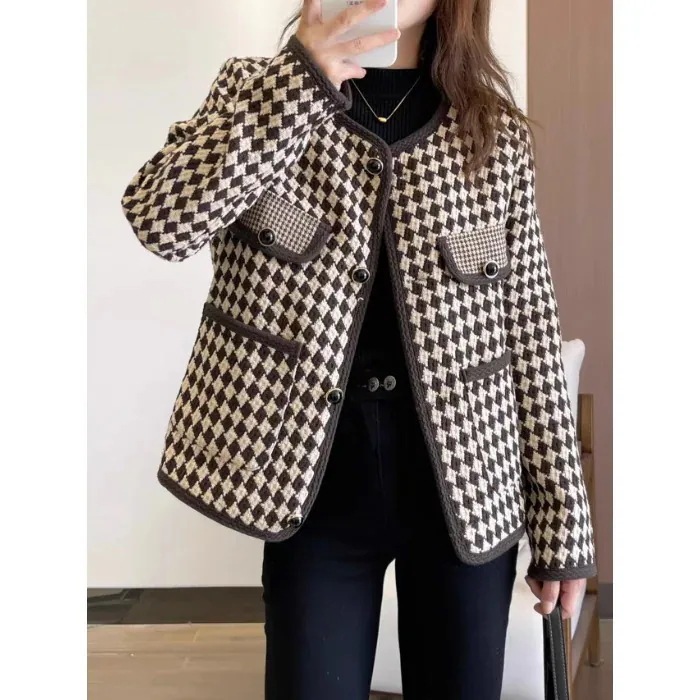 ノーカラージャケットレディーススーツ千鳥柄フォーマルジャケットブレザーコートトップス長袖アウター