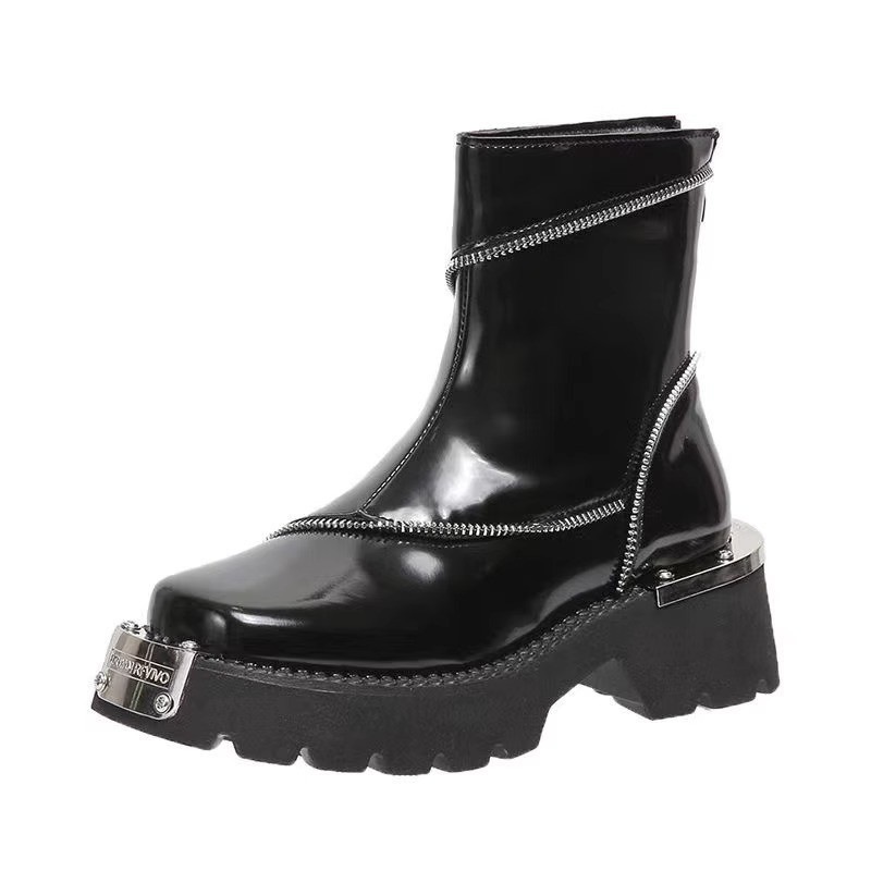レディースプラットフォームマーティンブーツ新しい秋/冬スタイル英国スタイルチェルシーブーツファッショナブルでトレンディレトロなメタリック機能的なショートブーツ