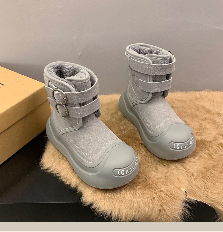 スマイリーフェイスのスノーブーツユニセックスアメリカンスタイルブスキュートビッグヘッドのマーティンブーツ冬用フリース裏地暖かいカップルスタイル北東スタイル