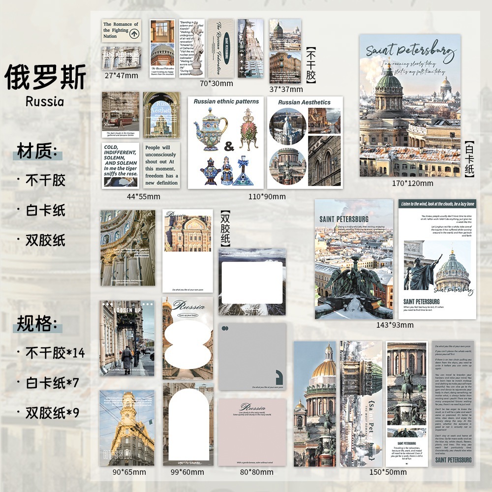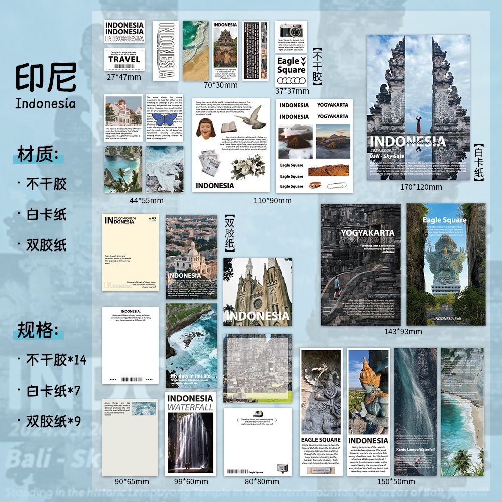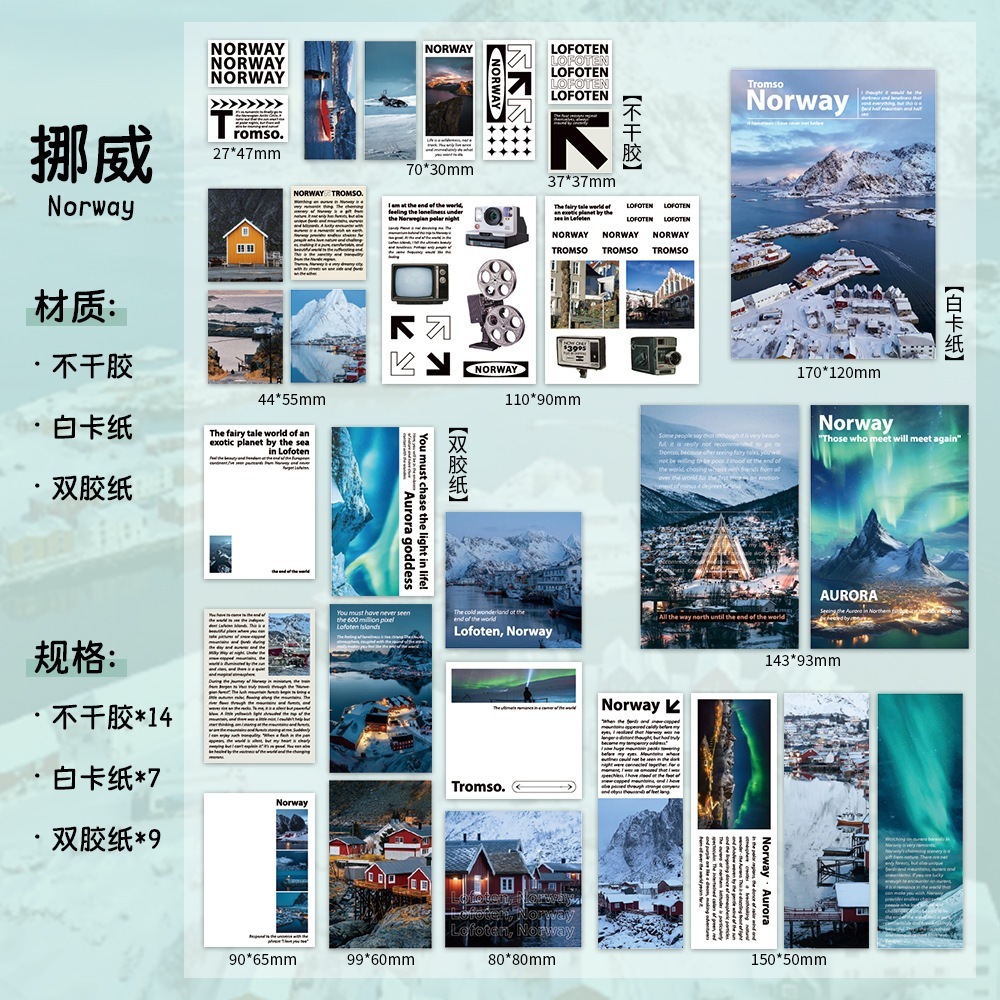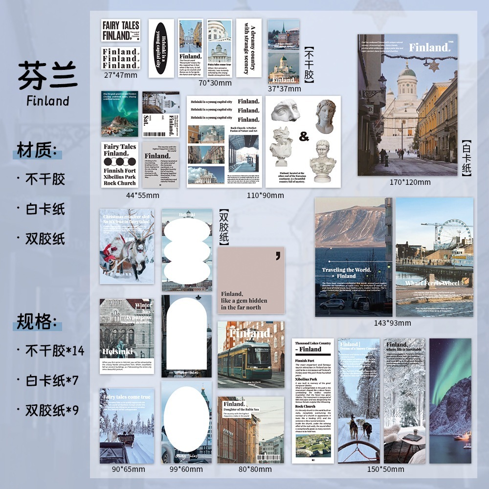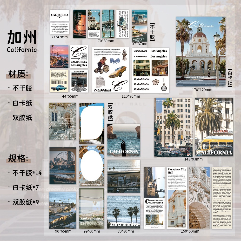 Instagram風の韓国風ステッカー30枚ロマンチックな風景雑誌風のノート素材日記帳デコレーションステッカー