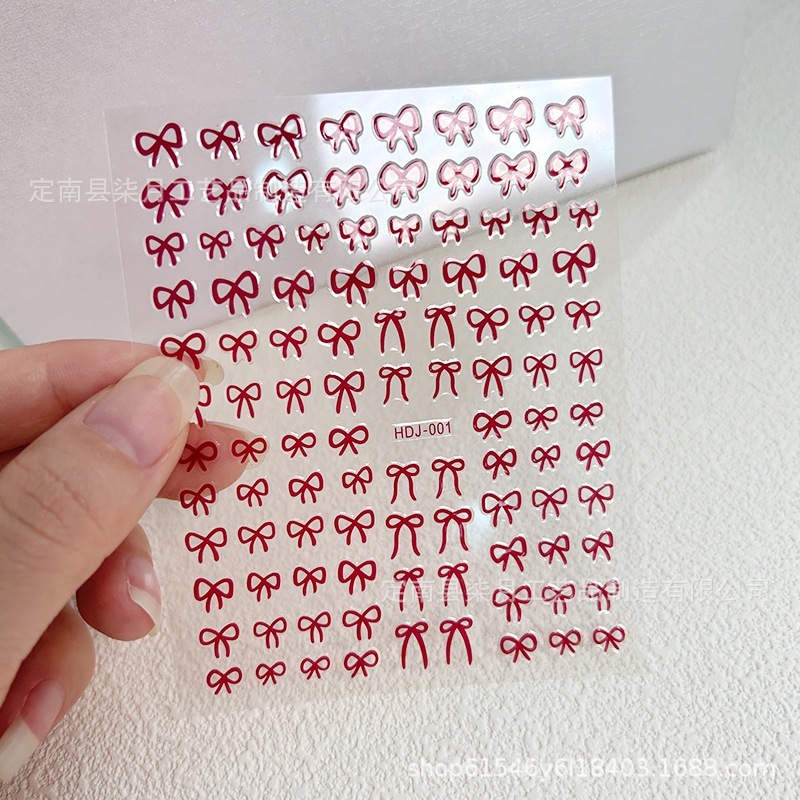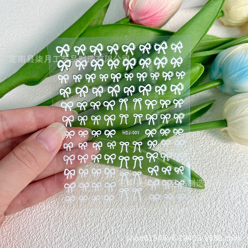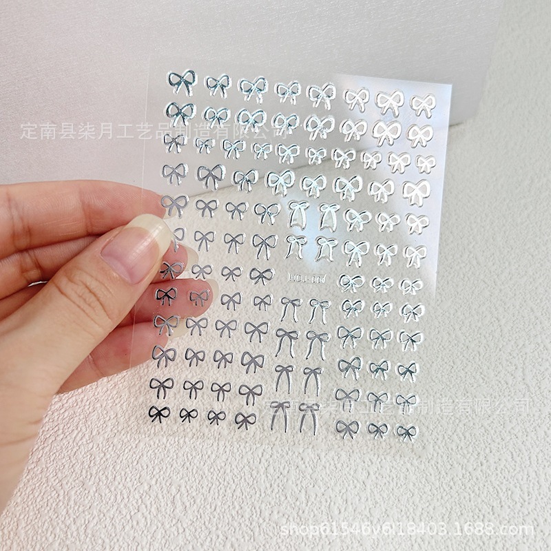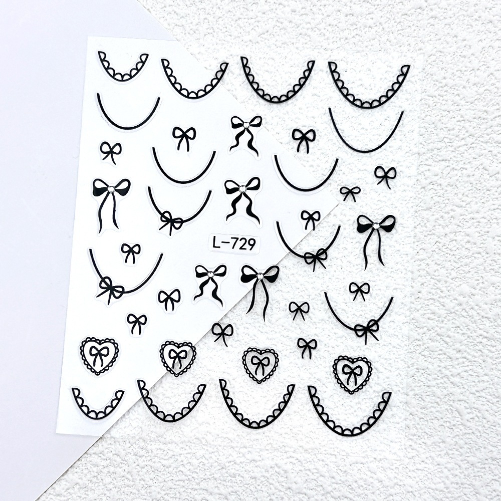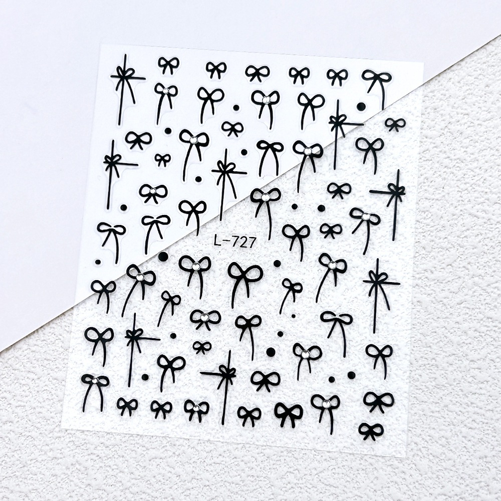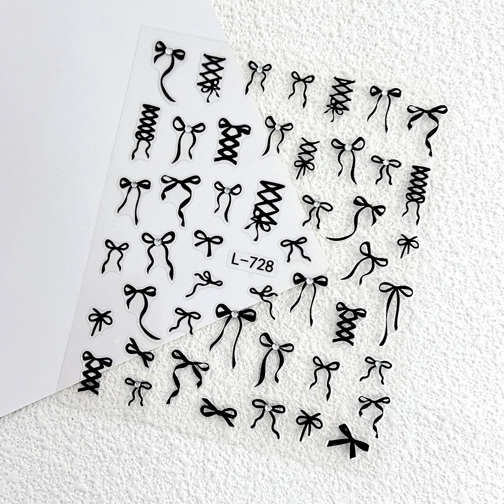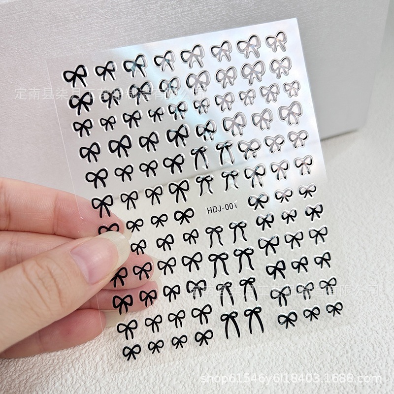 Instagram 映えするトレンディなリボン ネイル ステッカー3D ブラック & ホワイト ゴールド ホイル プリントウェアラブル ネイル アートネイル デコレーション デカール