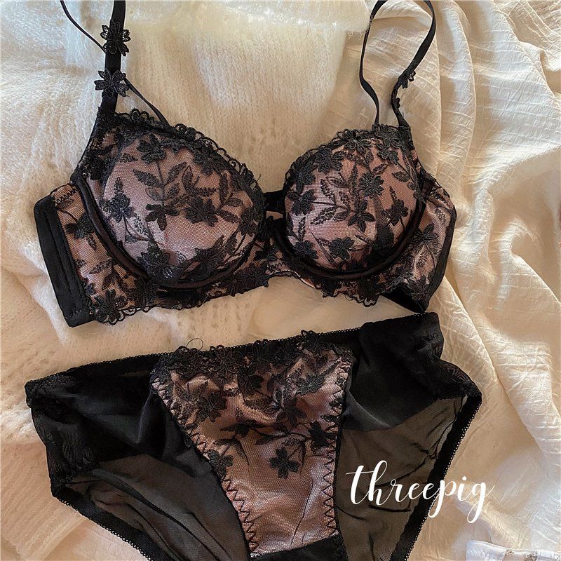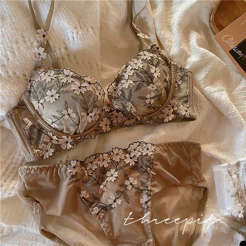 日系の少女感 立体刺繍 レース 下着 女性 小さな胸が大きく見える 調整型 ソフトワイヤー ブラジャーセット