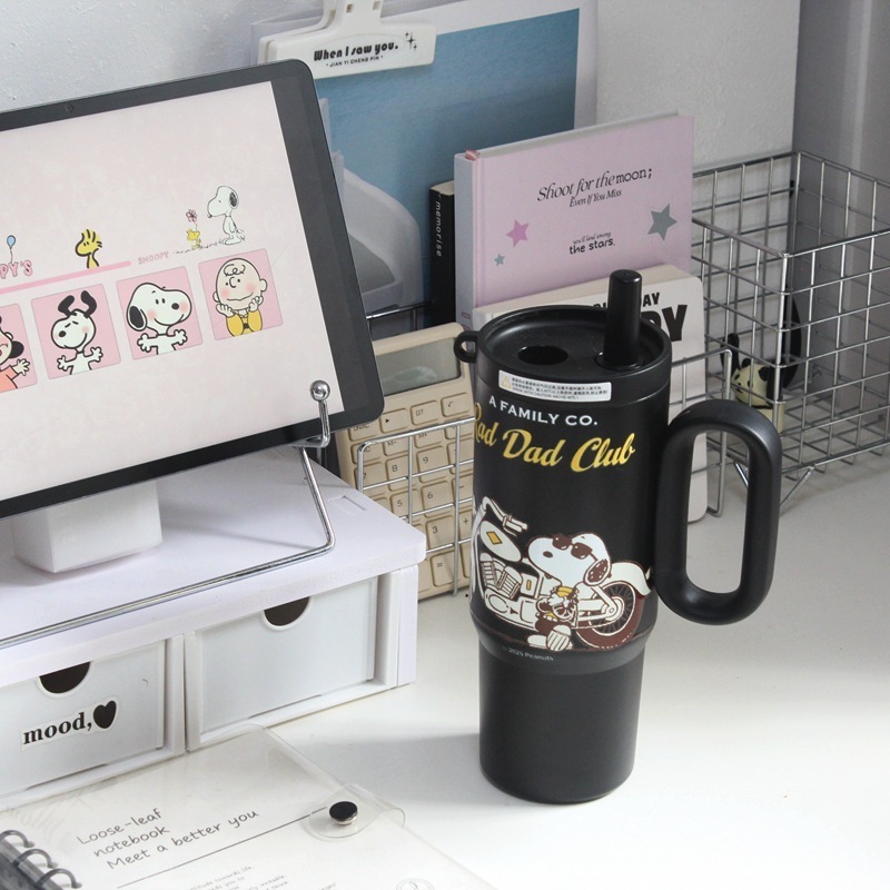 大容量車載アイスカップ316ステンレス保温カップ携帯ストローカップスヌーピー茶分離カップ