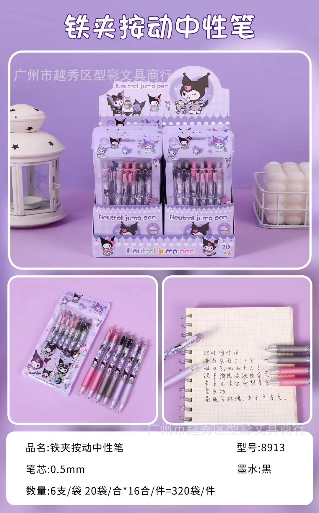 サンリオかわいいクロミ袋入り金属ペンホルダー押さえペン0.5 mm学生かわいい形押し中性ペン