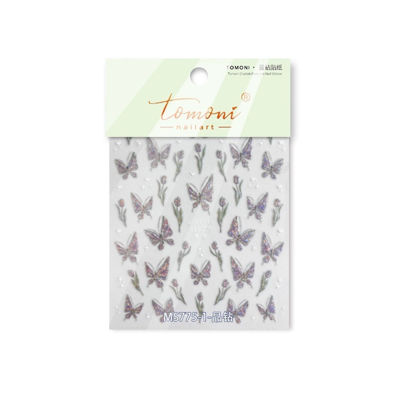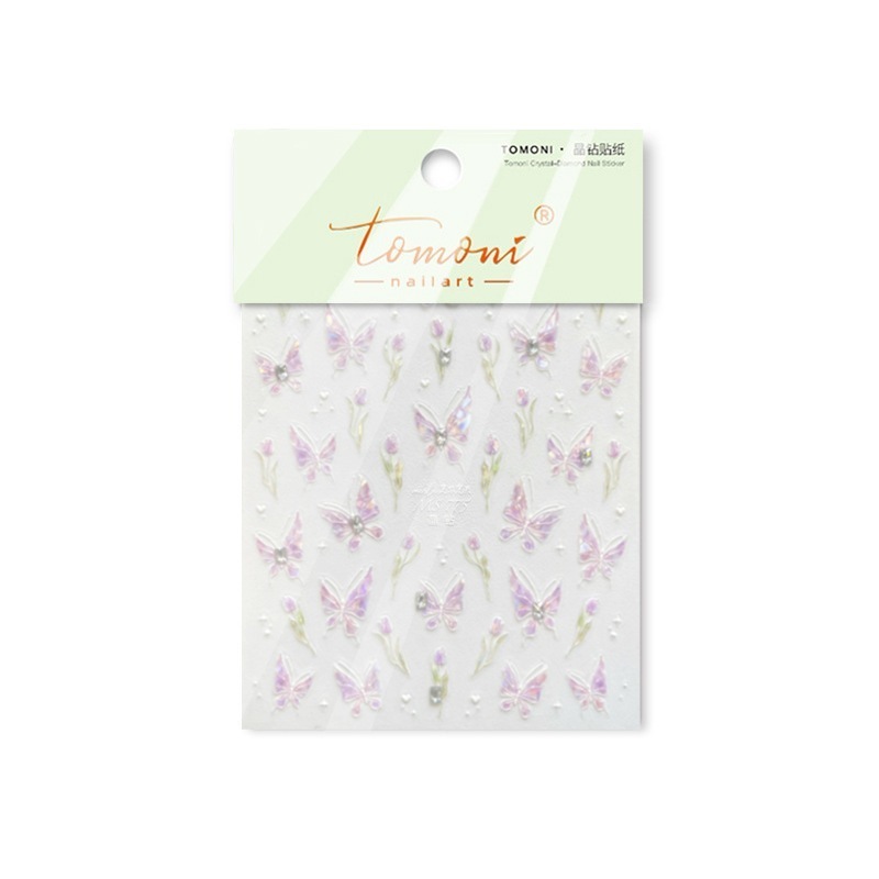 ダイヤモンドネイルシールチューリップ蝶シールコラボネイルシール