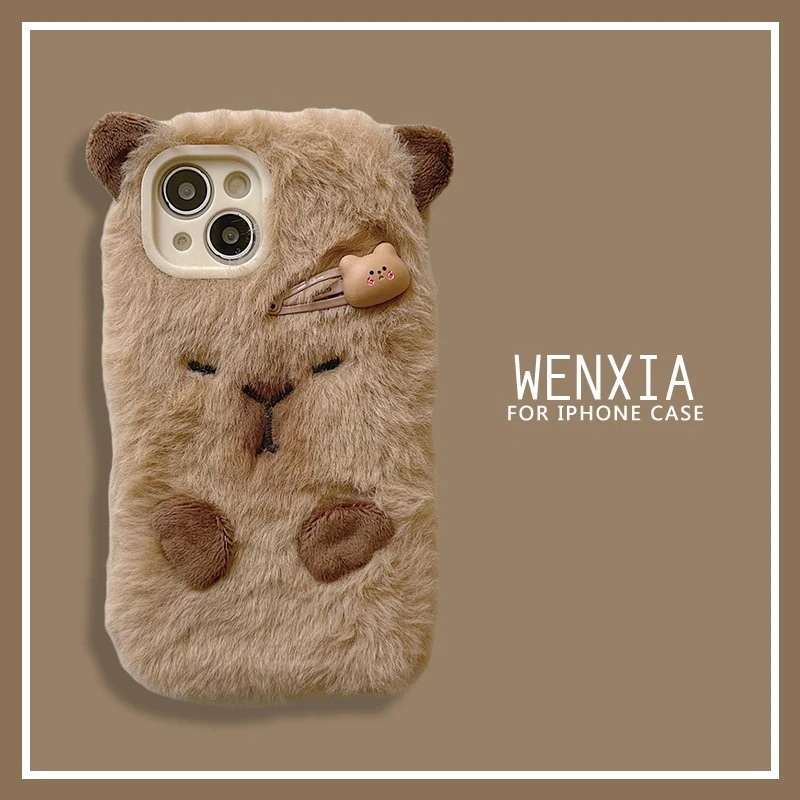 アップル17マックス ふわふわ秋冬スマホケース iPhone15 カピバラ ヘアクリップ付き保護ケース iPhone 17 Pro Max