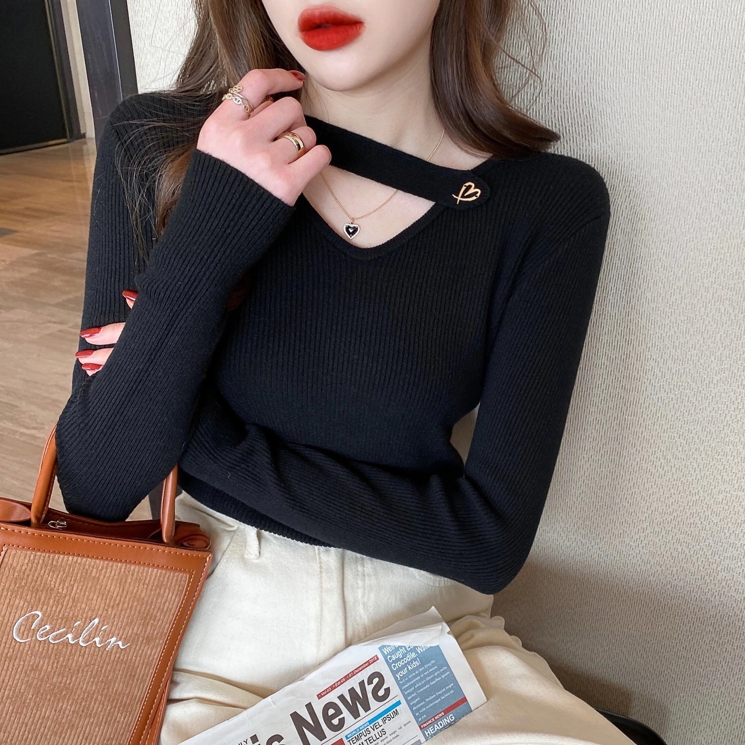 タートルネックベーシックニット ニット セーター フィット ウォーム インナー タイト