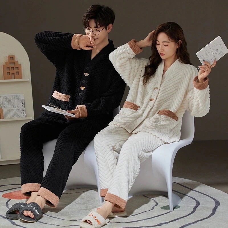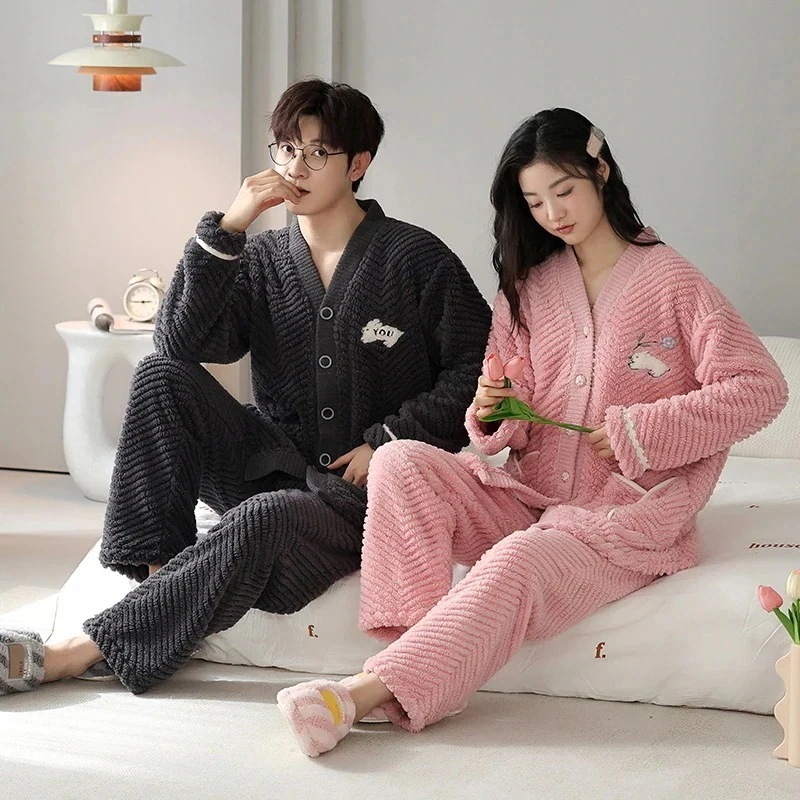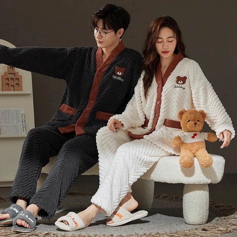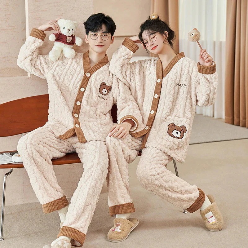 フランネルパジャマ 2点セット レディース メンズ 秋冬 厚手 暖かい もこもこ 長袖 ルームウェア カップルペアルック 大きいサイズ 部屋着 可愛い 単品売り