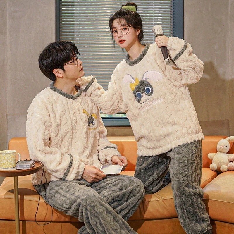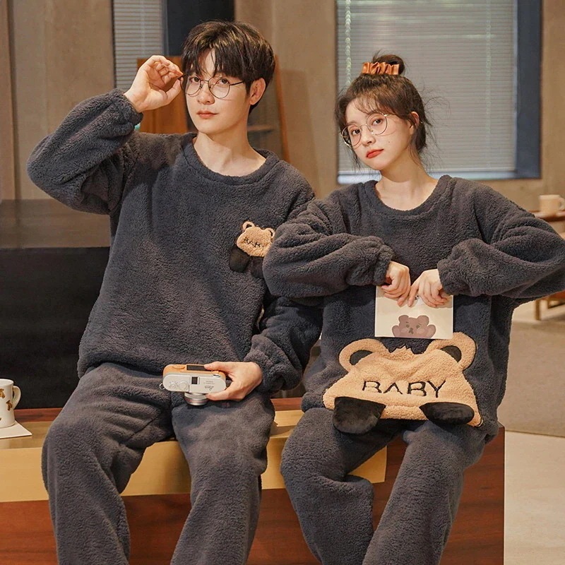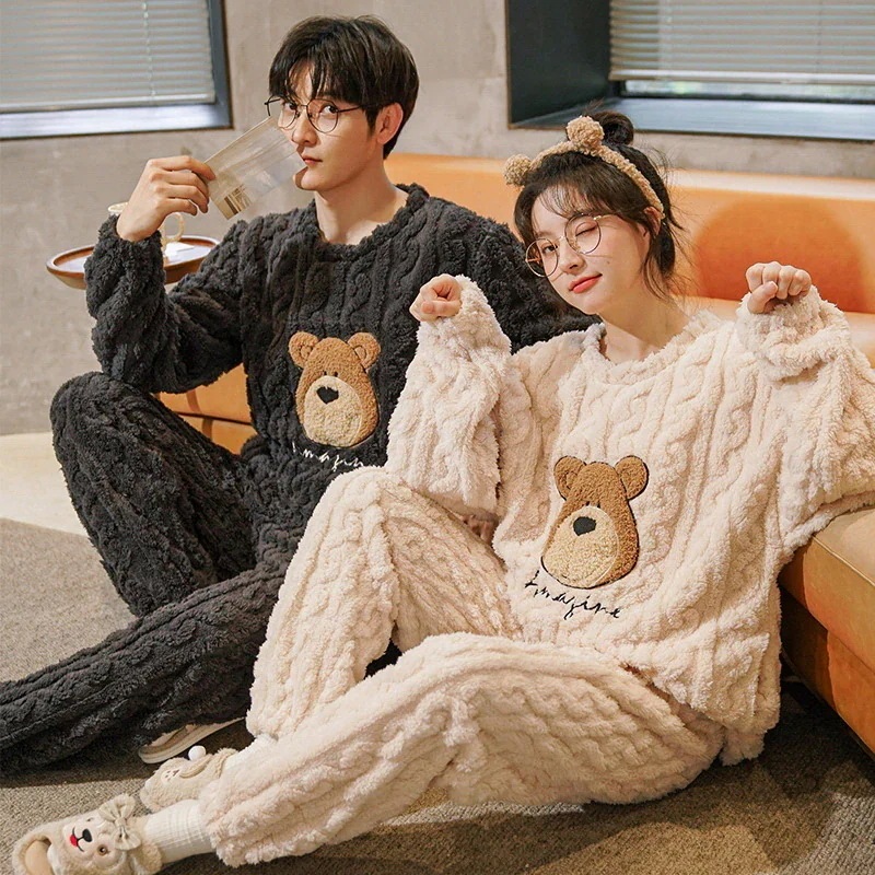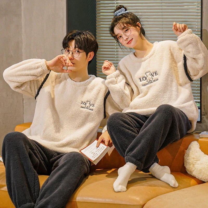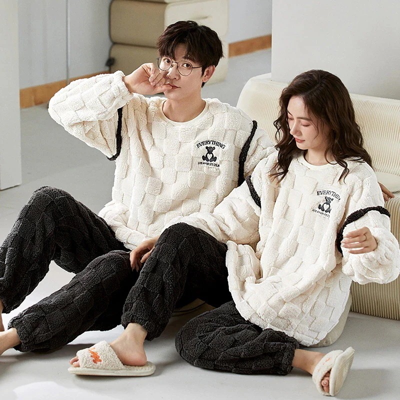 ペアパジャマ フランネル カップル 長袖 レディース メンズ 上下セット セットアップ 秋冬 パジャマ フランネル 長ズボン 室内用 お揃い