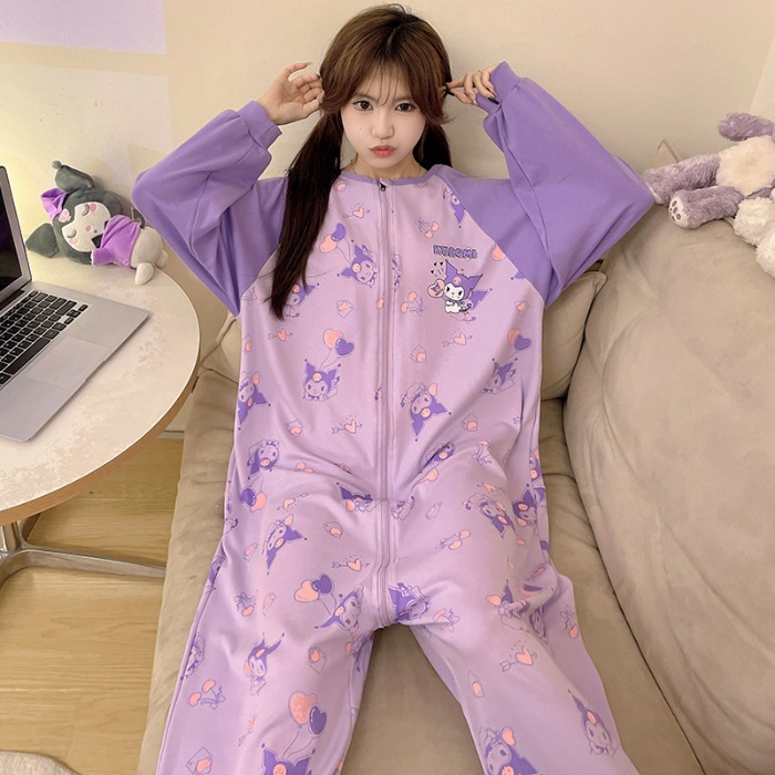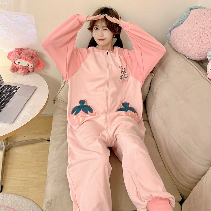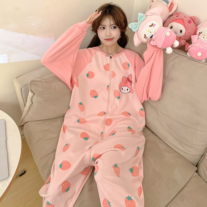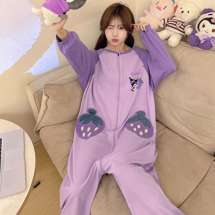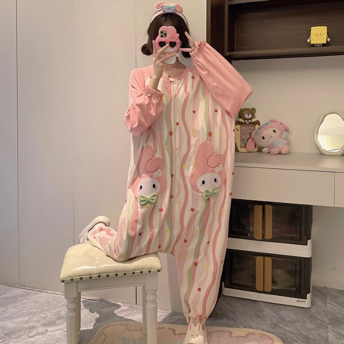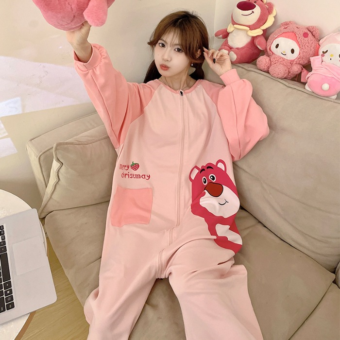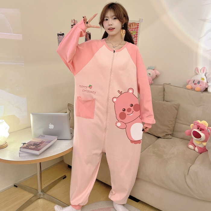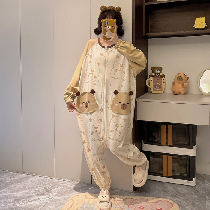 可愛いカピバラ柄 100% コットン ワンピースパジャマ レディース 春秋 ロングスリーブ カートゥーン 親子用 外出可 ホームウェア
