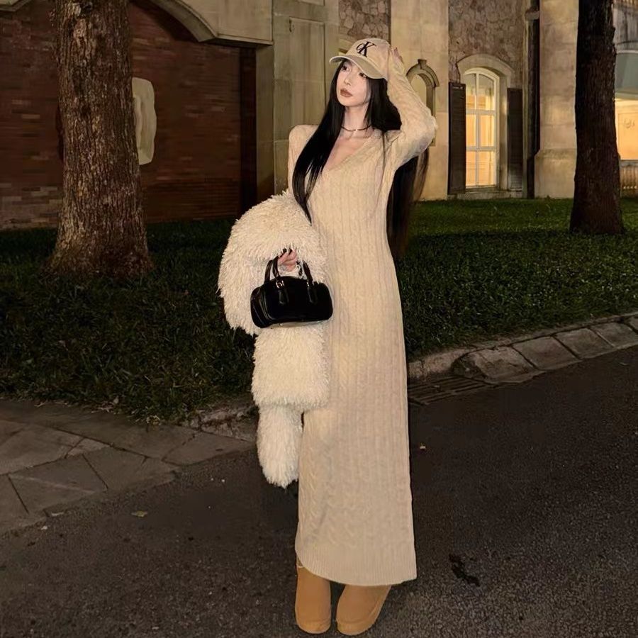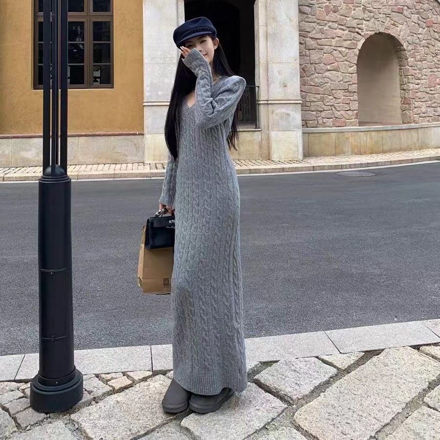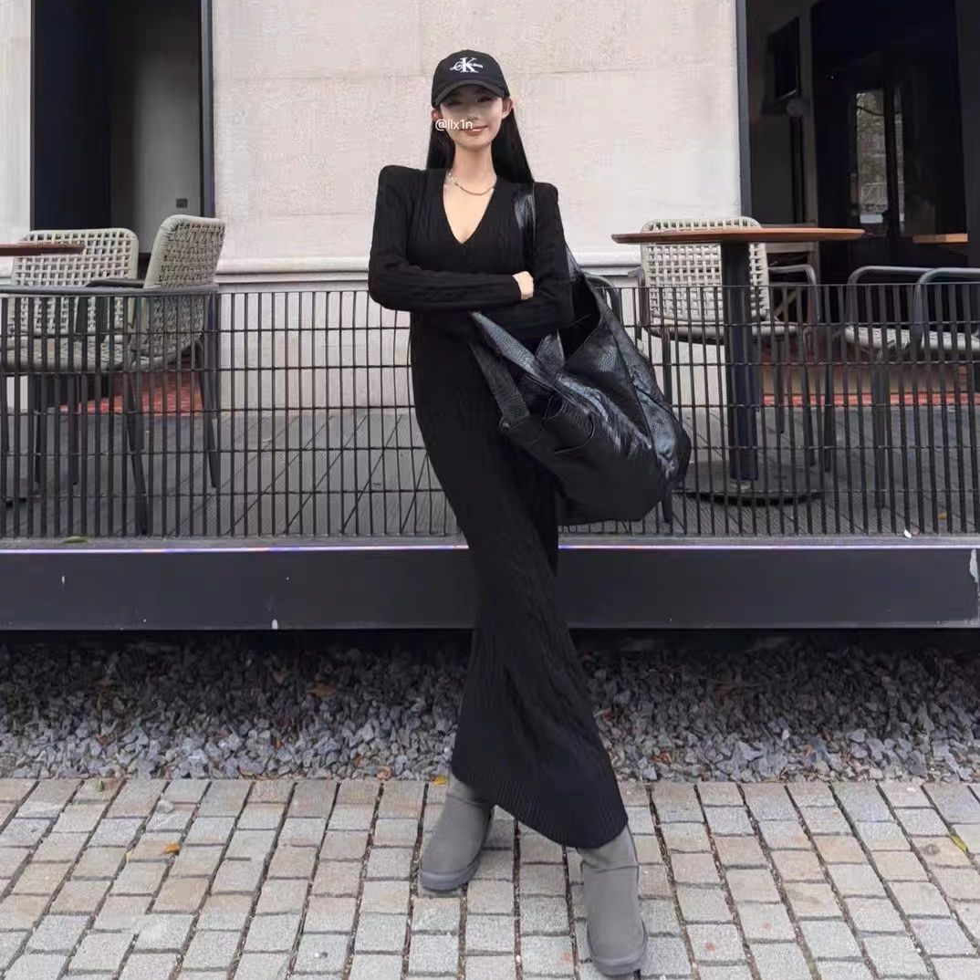 急速出荷レトロヒップ秋冬インナーおしゃれセーター長袖ワンピース女