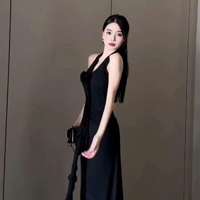 急速出荷赤い首掛けキャミソール女装2025夏新作ギャルセクシー背中見せワンピース韓国ファッション