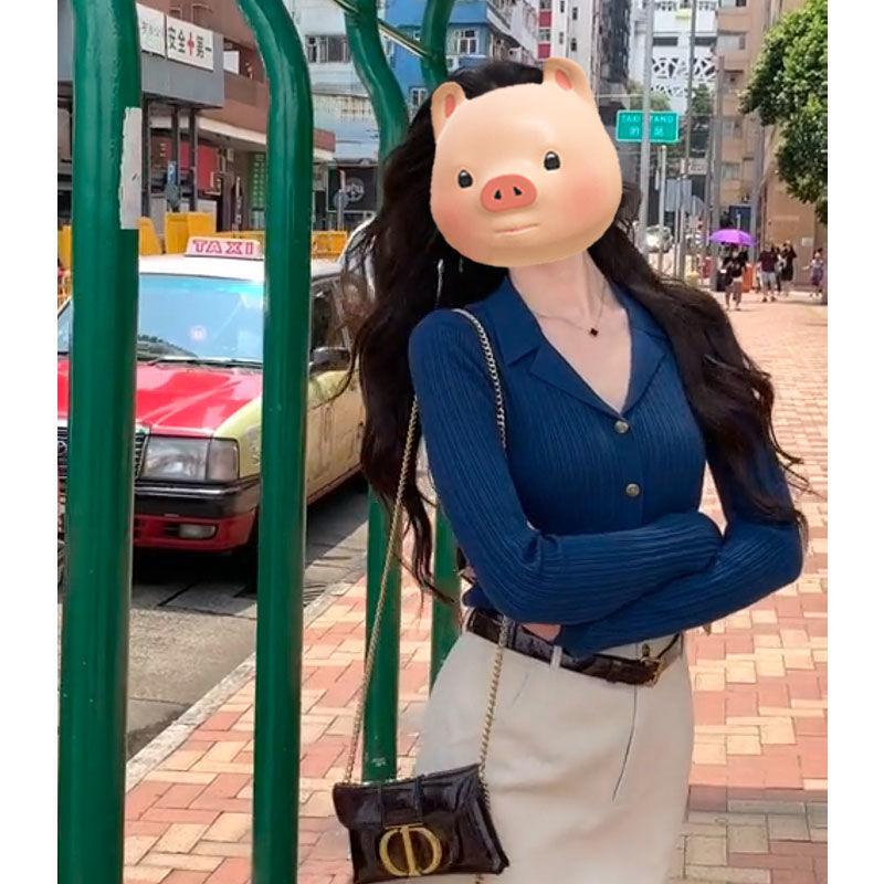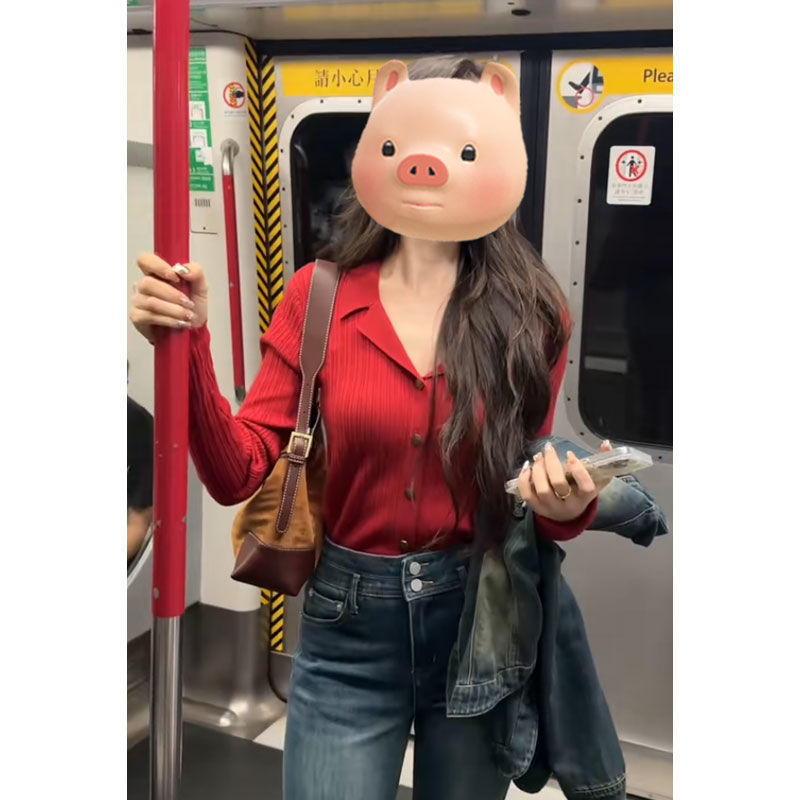 赤色長袖ポロネックニットトップス女性用2025年初秋新作スリムシルエットユニークな美しい襟付きシックなトップス