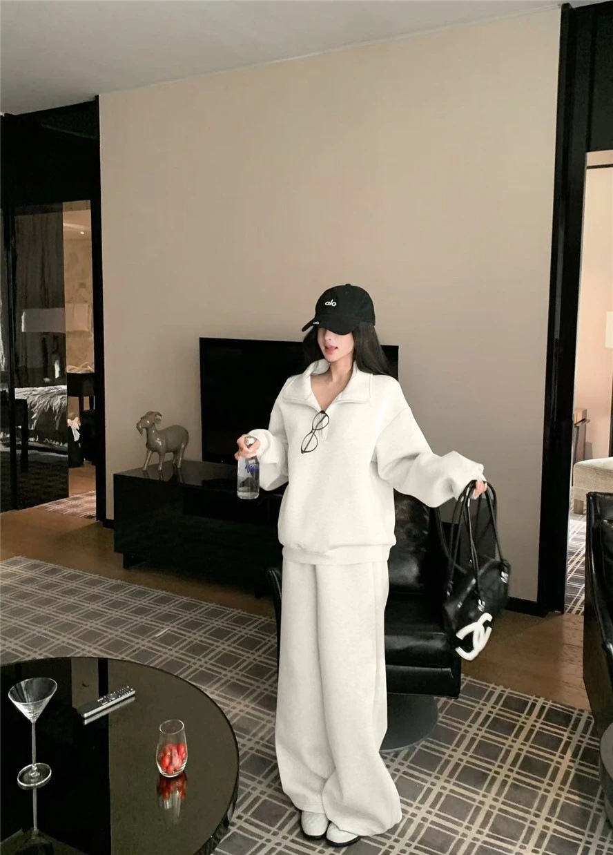 韓国 長袖 2025秋冬 かわいいレディース無地 レトロセット黑白フーディーブルサイズ丈トップス春カジュアルスポーツファッション系通学学生袖お出かけアップシルエットトラック トレーナー