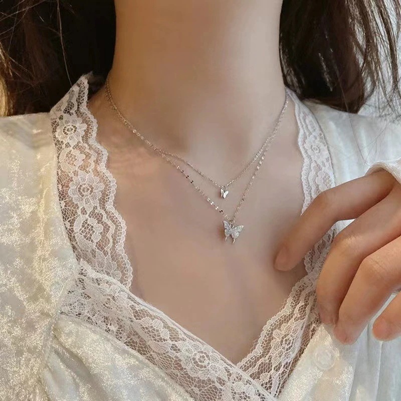 ネックレス バタフライ スタックバンド 韓国風 デザインセンス フラッシュダイヤモンド 蝶 多彩 ニッチ 気質 レディース