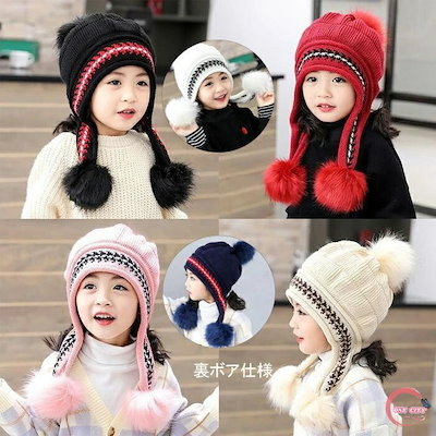 防寒ニット帽 キッズ 子供 女の子 耳あて付き 耳付き 秋冬 ボア ファー あったか ジュニア 子供用 スキー スノボ スノーボード おしゃれ かわいい 帽子 防寒帽子 伸縮性 寒さ対策 雪遊び プレ