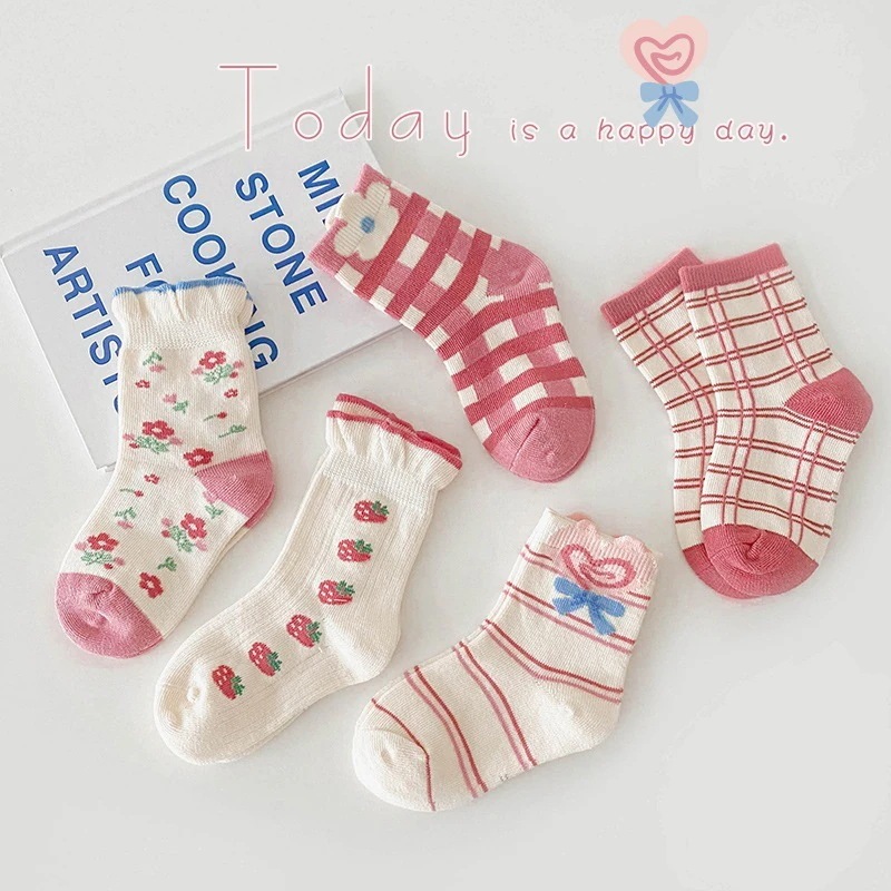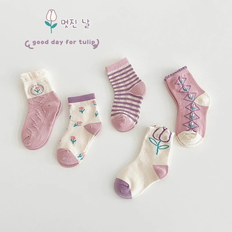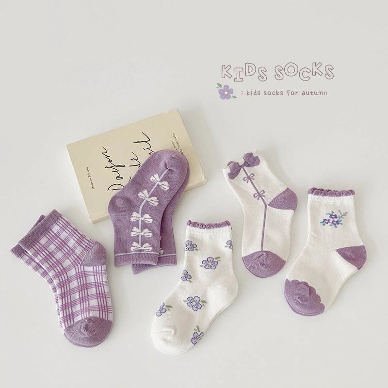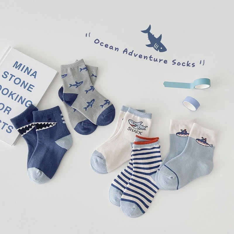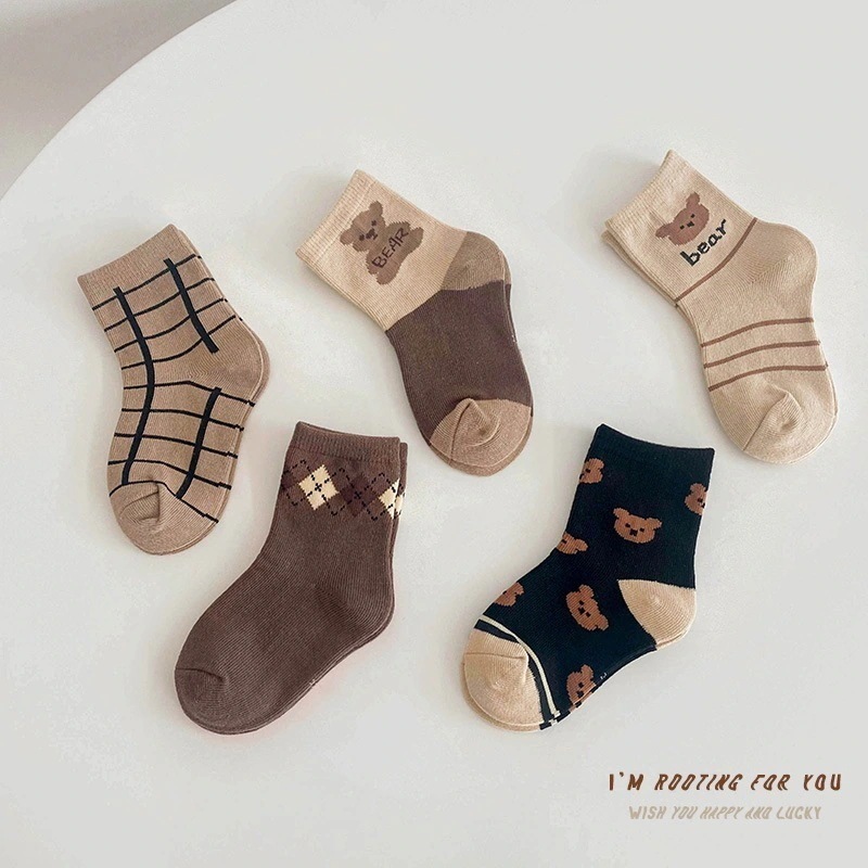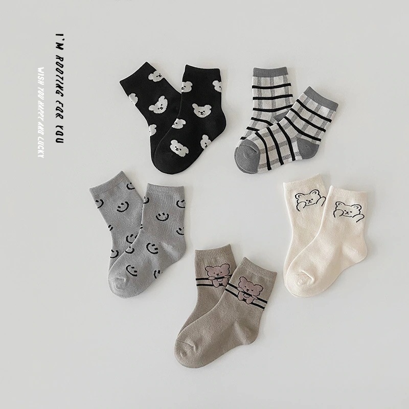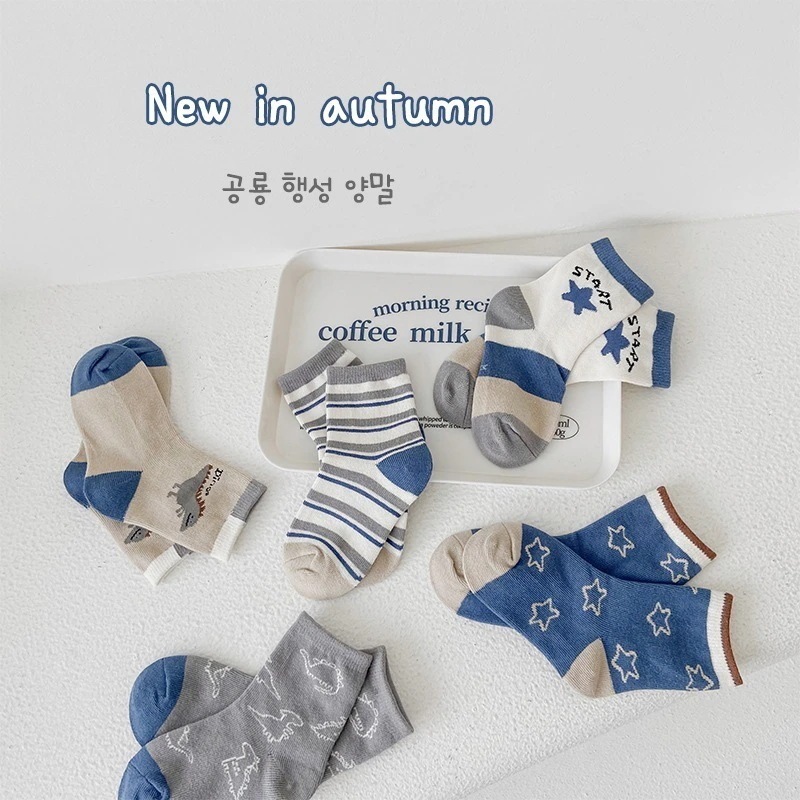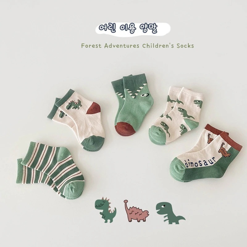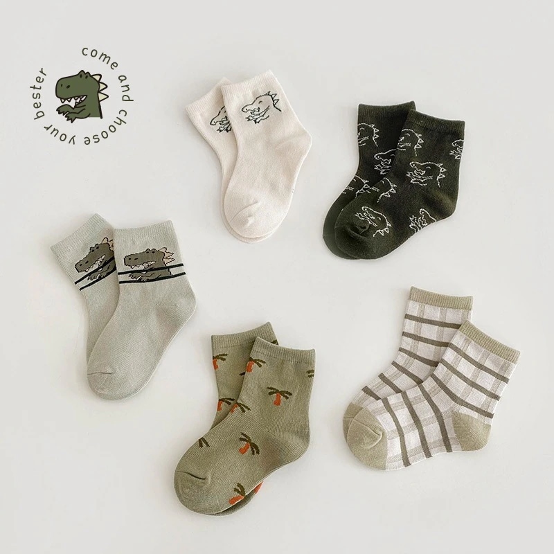 1258 子供の靴下 2024 秋の新しい漫画の配色の恐竜の靴下の赤ちゃんの綿の靴下の学生の靴下