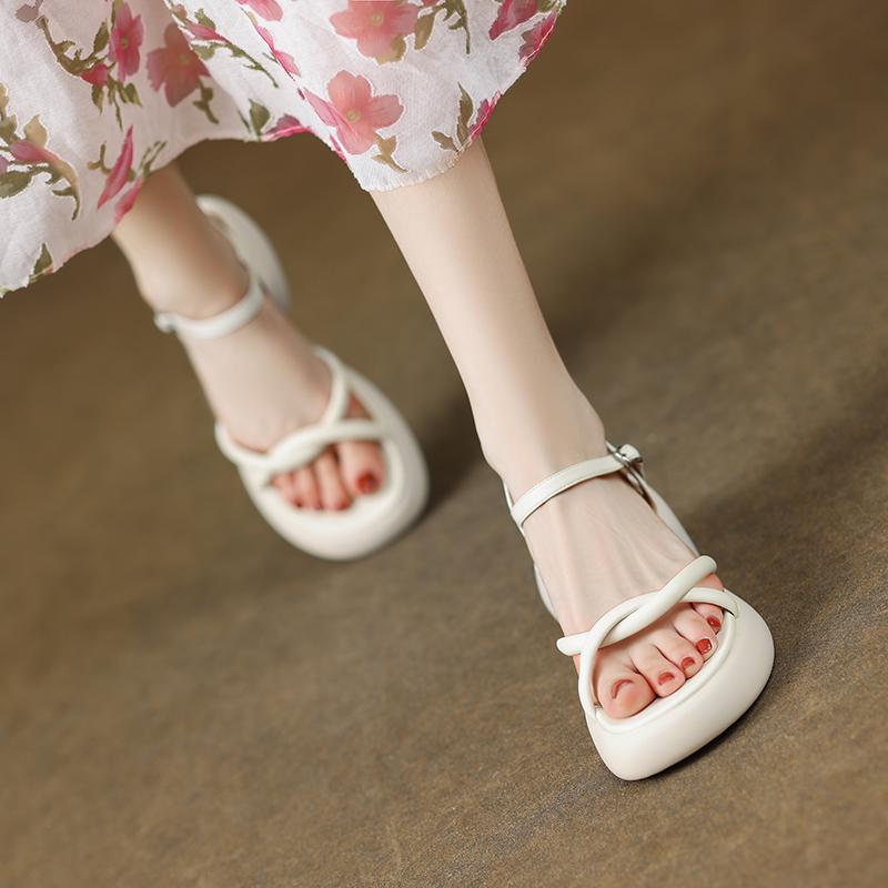 G63 本革 履き心地 韓流 サンダル 美脚 ヒール パンプス 快適 ローヒール 靴 トング ストラップ サンダル レディース 厚底サンダル パーティー ストラップ 韓国ファッション 夏 韓国