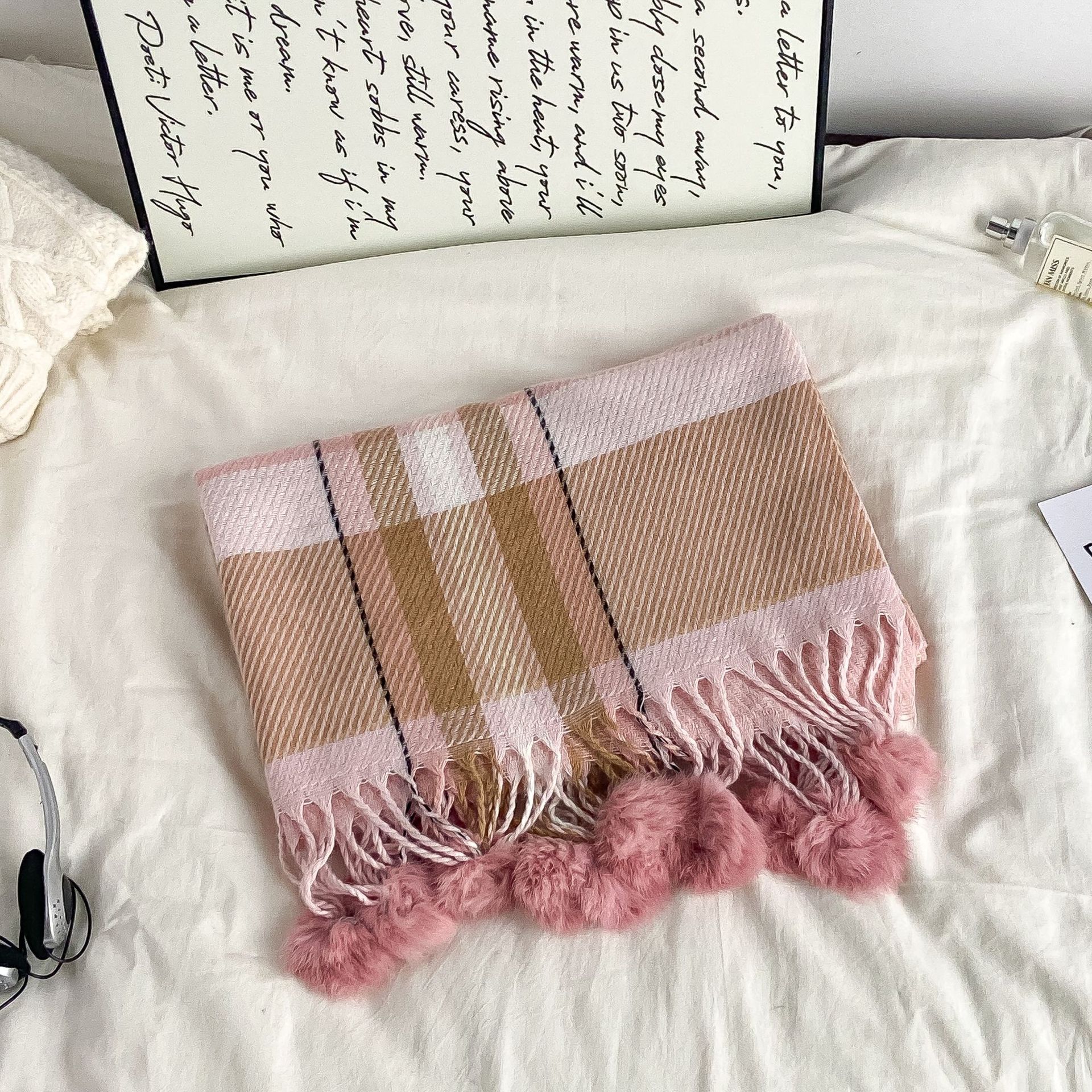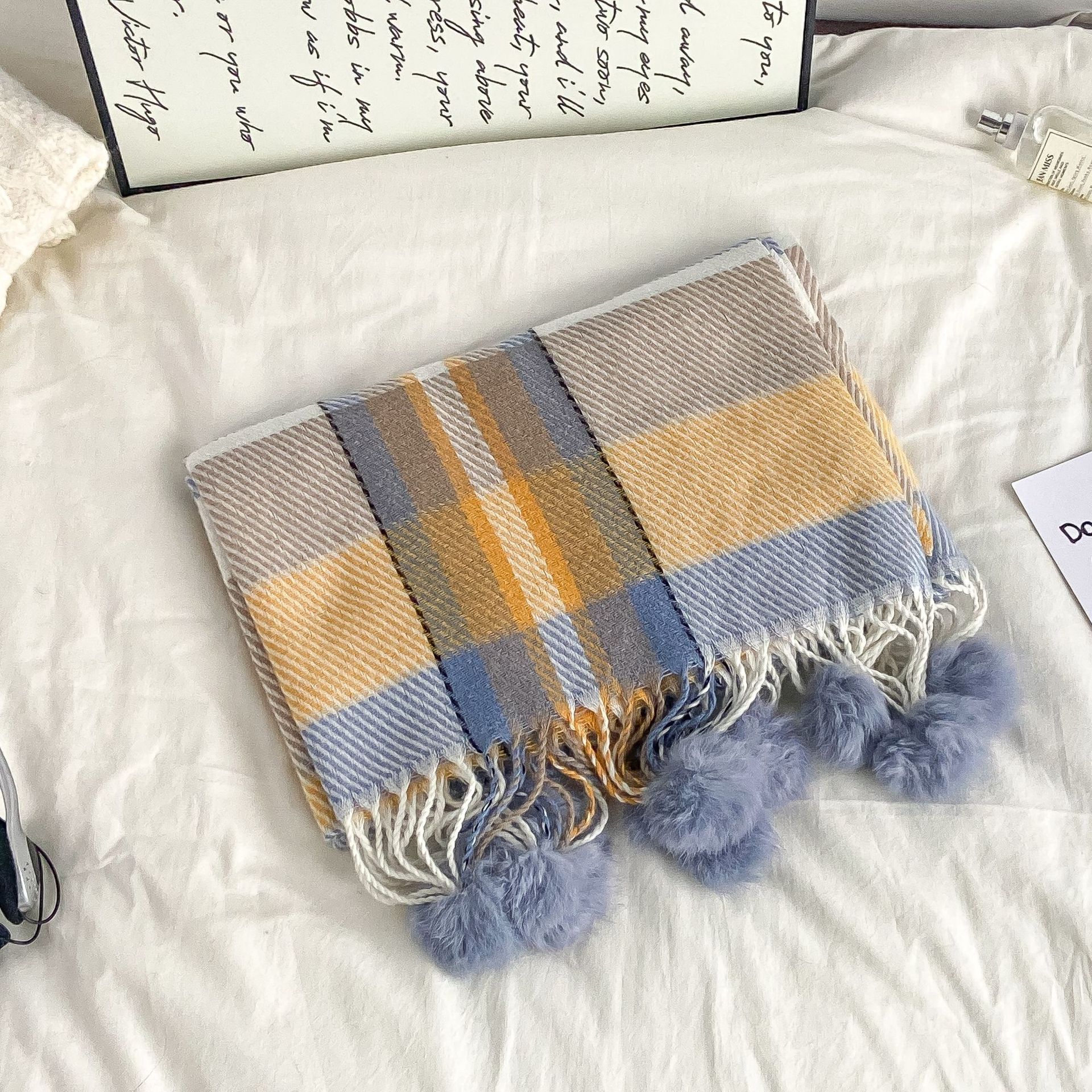 レディース学生用かわいいチェック柄スカーフ 模造カシミア素材 冬暖かい韓国風マフラー