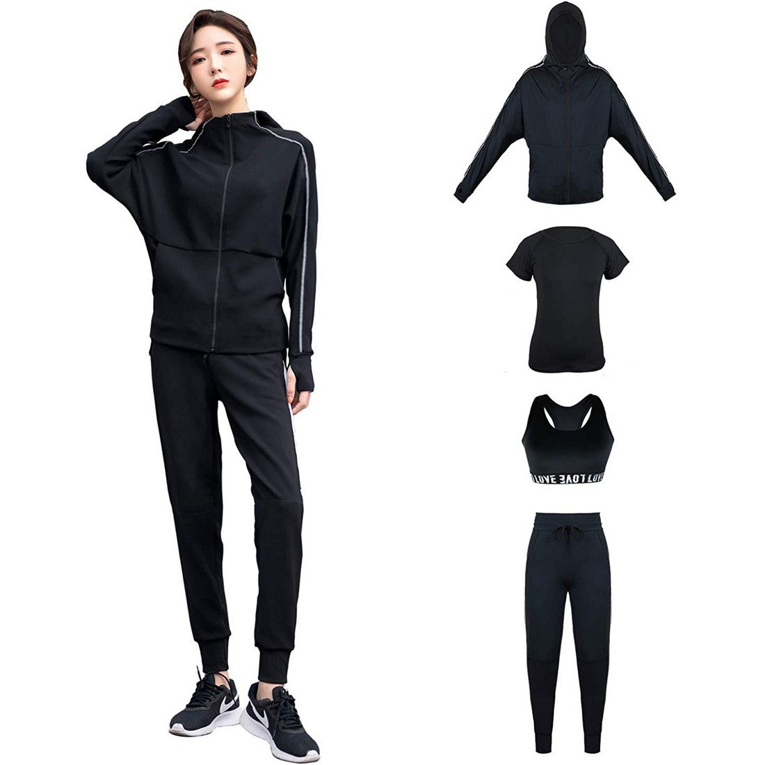 2枚購入で100円OFF!スポーツウェア ヨガウェア 上下セット フィットネス ジャージー スポーツブラ ロングタイツ パーカー 半袖