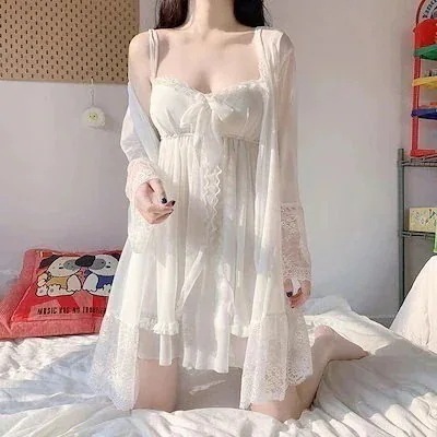 お姫様 レディース キャミ ウェア 2SET レースカバー付き ローブ ワンピース風3068