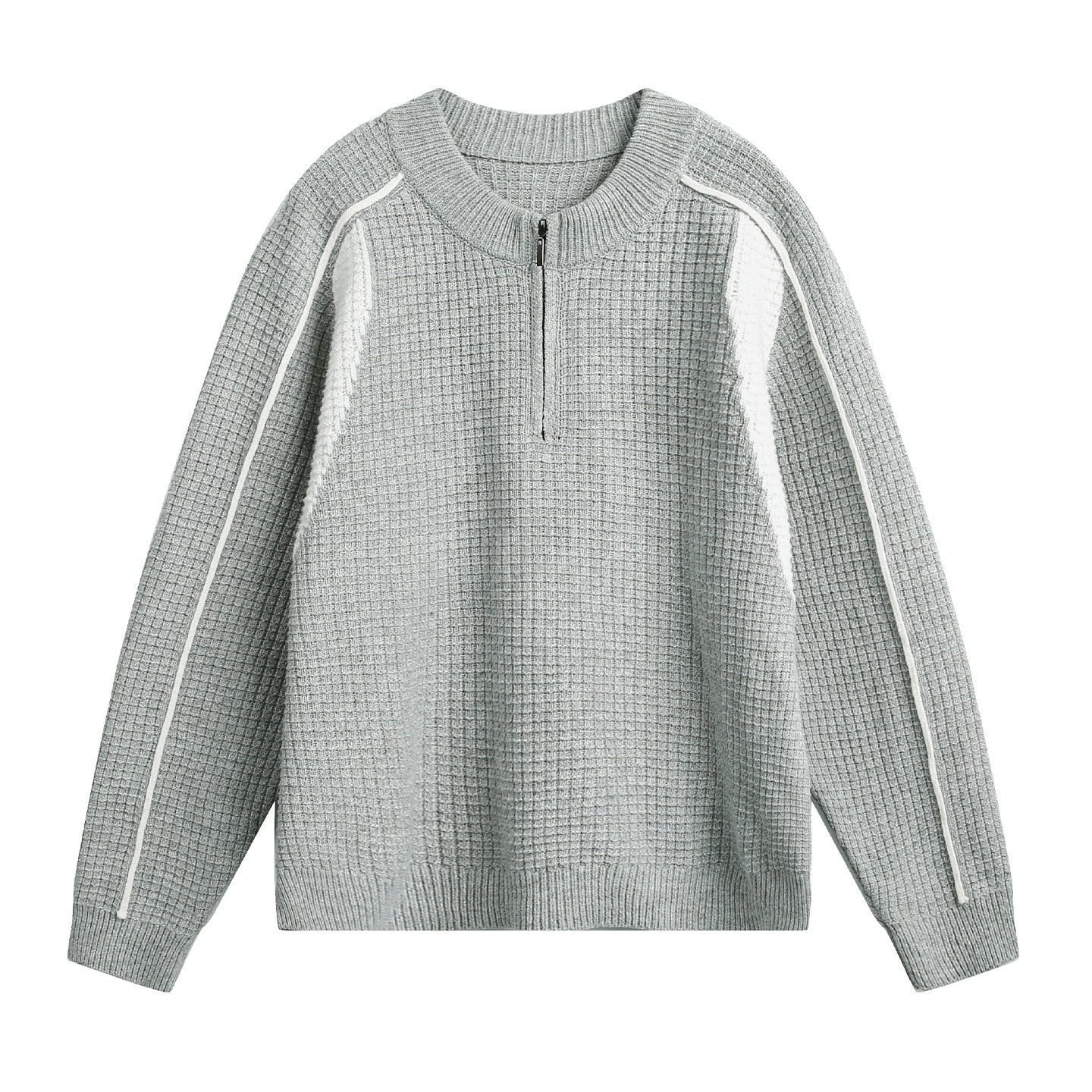 カラージョイント保温厚手センターカラーセーター男性秋冬モデル鹿の毛を模したハーフファスナー肌理ニットコート