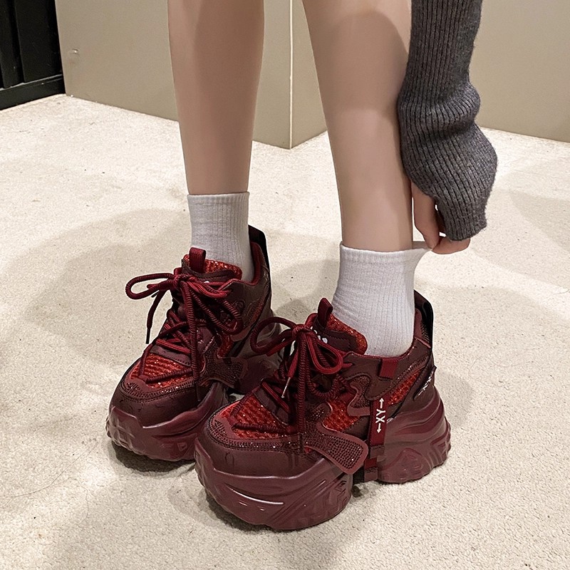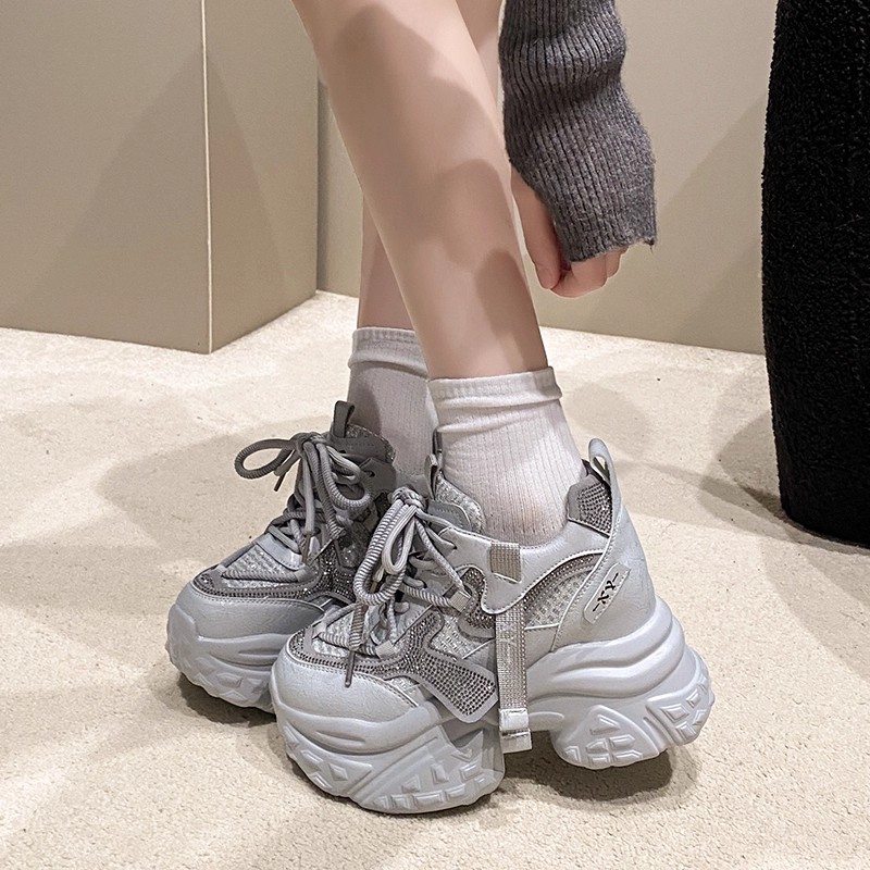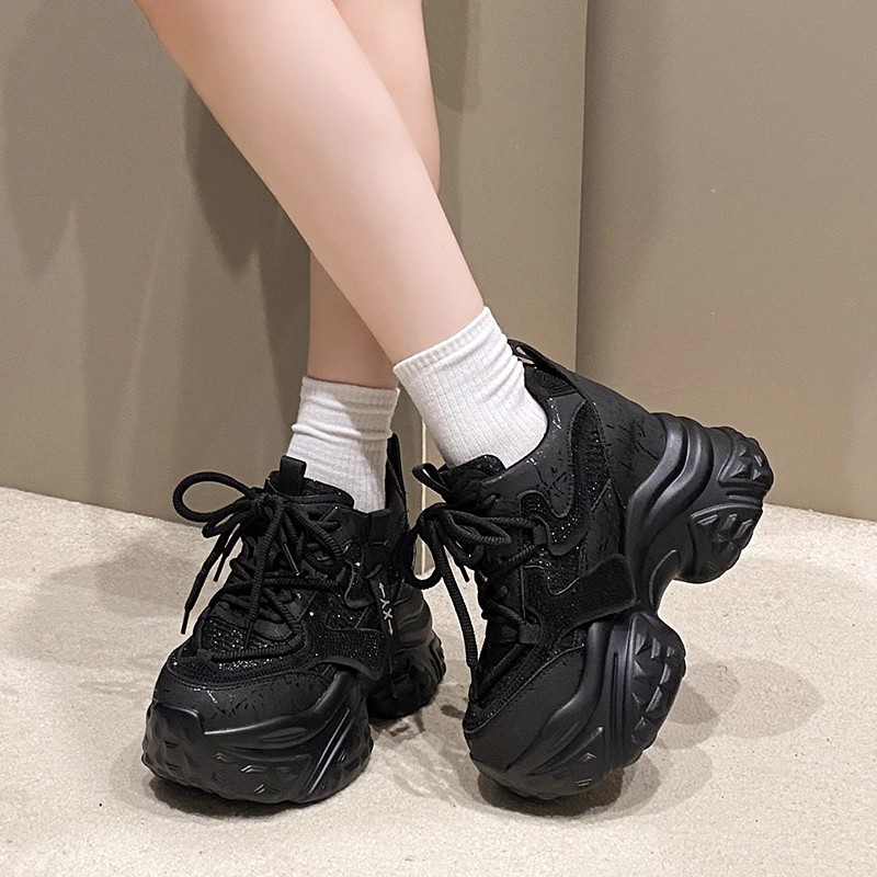 超目玉商品! 2025秋新品 超人気 厚底 スニーカー ヒール 9CM 春秋冬 韓国靴 通学通勤 今流行の靴 レディース 美脚 運動靴 白 スポーツシューズ快適ダッドスニーカー