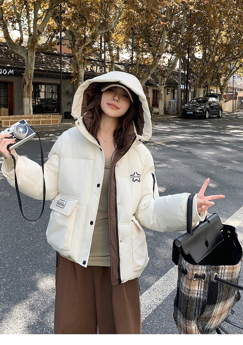 純色帽子と冬厚手2025新型帽子付きコート青少科技保温防寒ダウン綿服