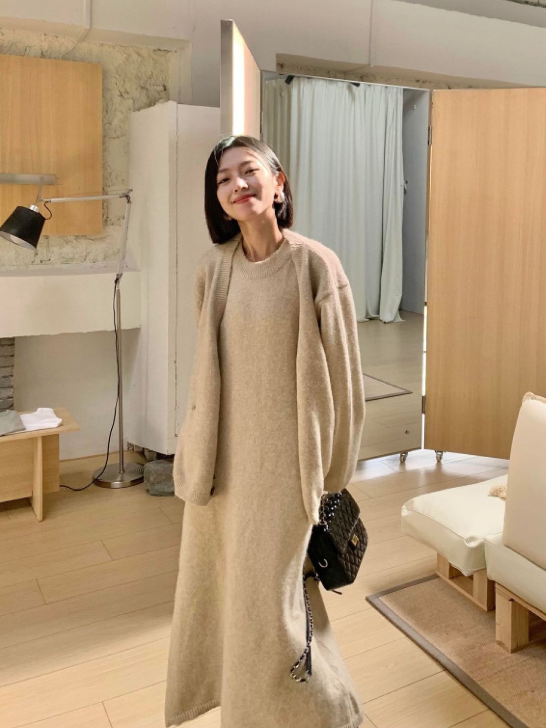2025年初秋 洗練されたリラックススタイル カジュアル万能ソフトニットカーディガンベストワンピース 秋冬用ツーピースセット
