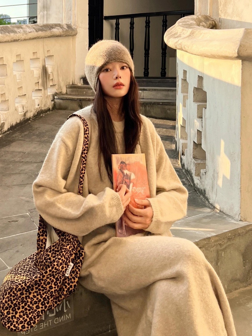 ニットセーターベストドレスとゆったりとしたフィット感が特徴の秋冬向けのリラックスしたスタイリッシュなツーピースセットです